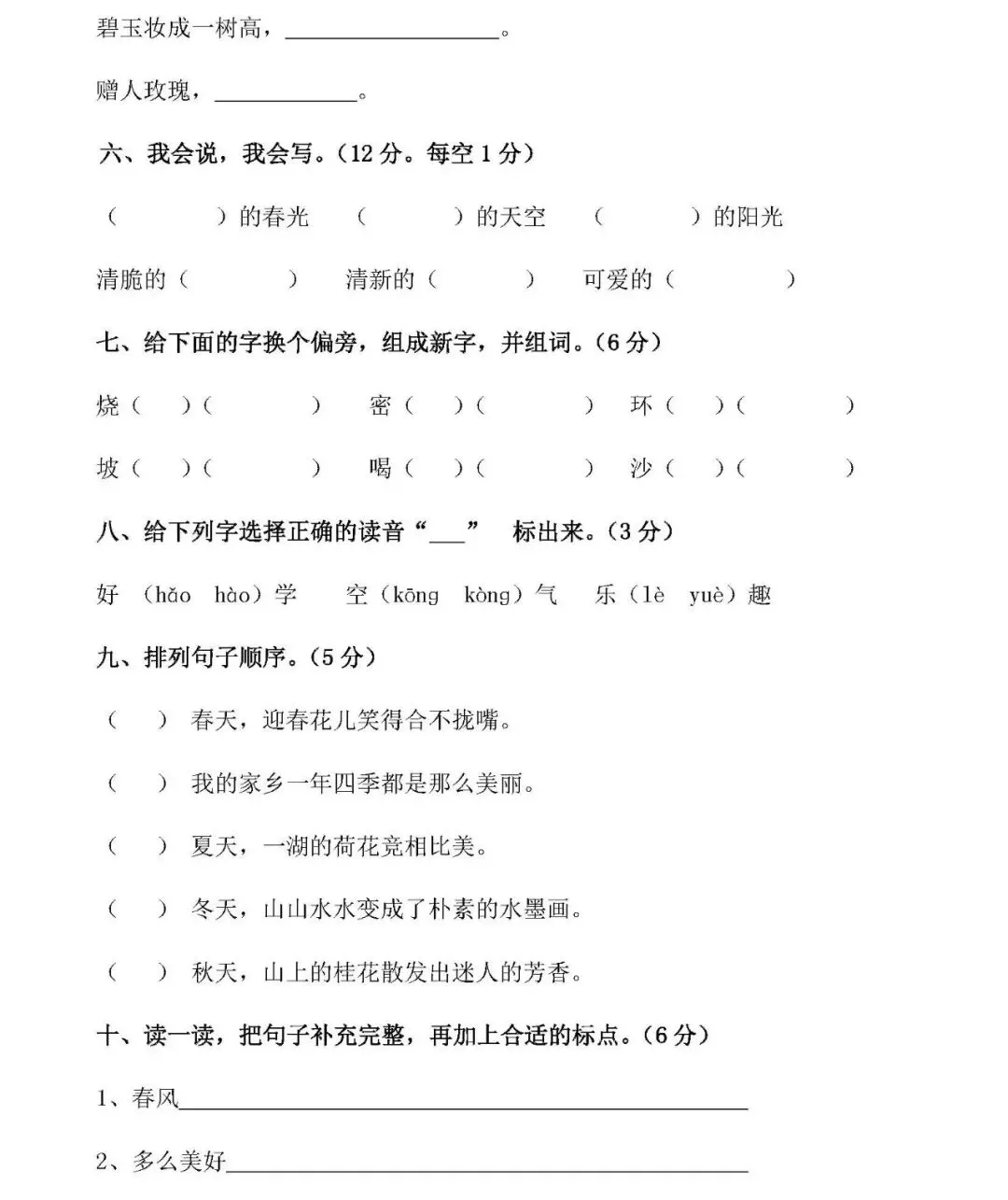 6、连词成句、连句成段:注意:不要漏掉词语、句子,写一个,划一个,写完后读一读是不是合理通顺。别忘了加标点。
