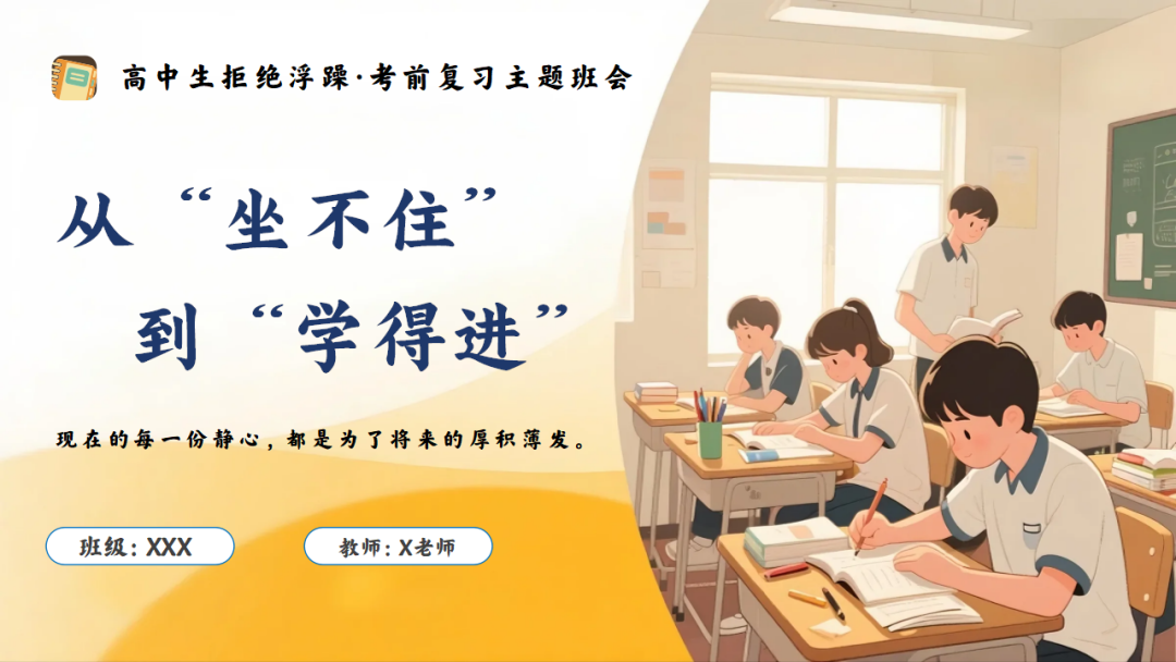 高中考前复习指导主题班会:高中生拒绝浮躁/班会:静心备考,高中生拒浮躁(附32页ppt课件)