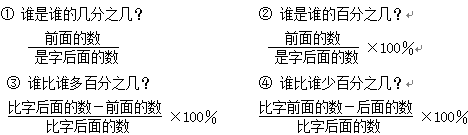 4、求甲比乙多(少)几分之几? 多:(甲-乙)÷乙 少:(乙-甲)÷乙