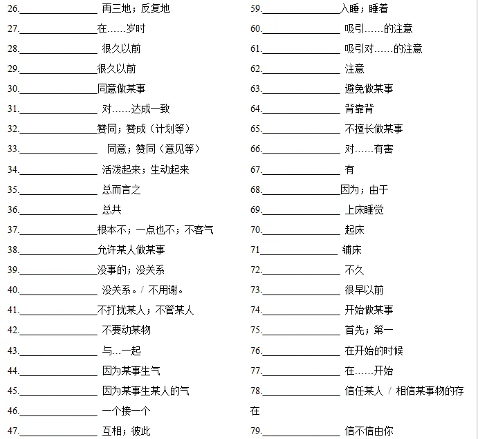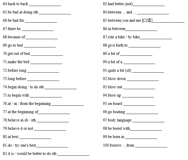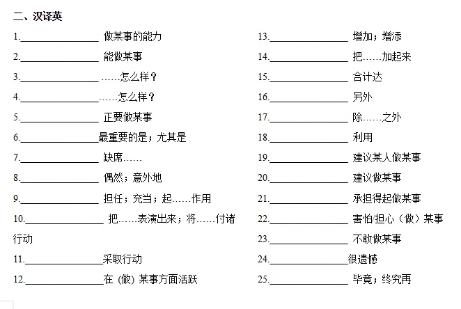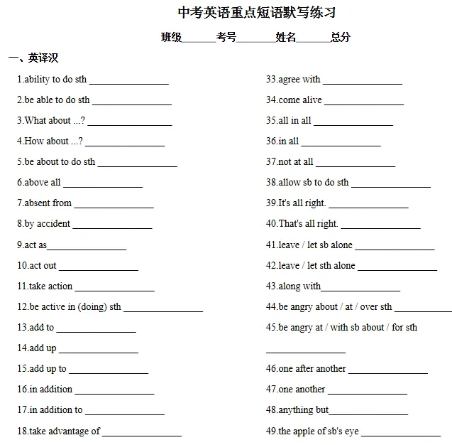 >中考英语复习重点短语默写练习 (英译汉+汉译英)| 可免费下载打印
