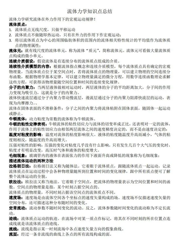 流体力学 的知识点太多了,又分布在书上的各个地方,找起来好麻烦!