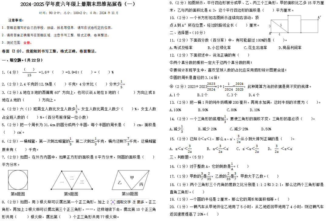 【复习资料】2025人教版小学六年级数学上册(单元复习课件+单元复习讲义+知识清单+专项提升+期末试卷)全套下载