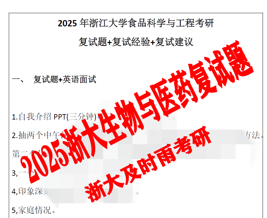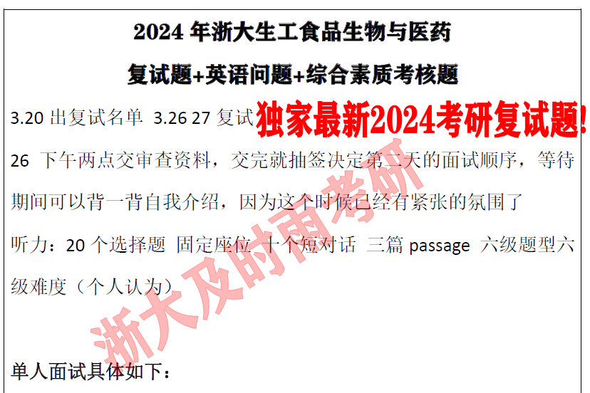 4、2024年浙大生工食品生物与医药复试英语问题+综合素质考核题