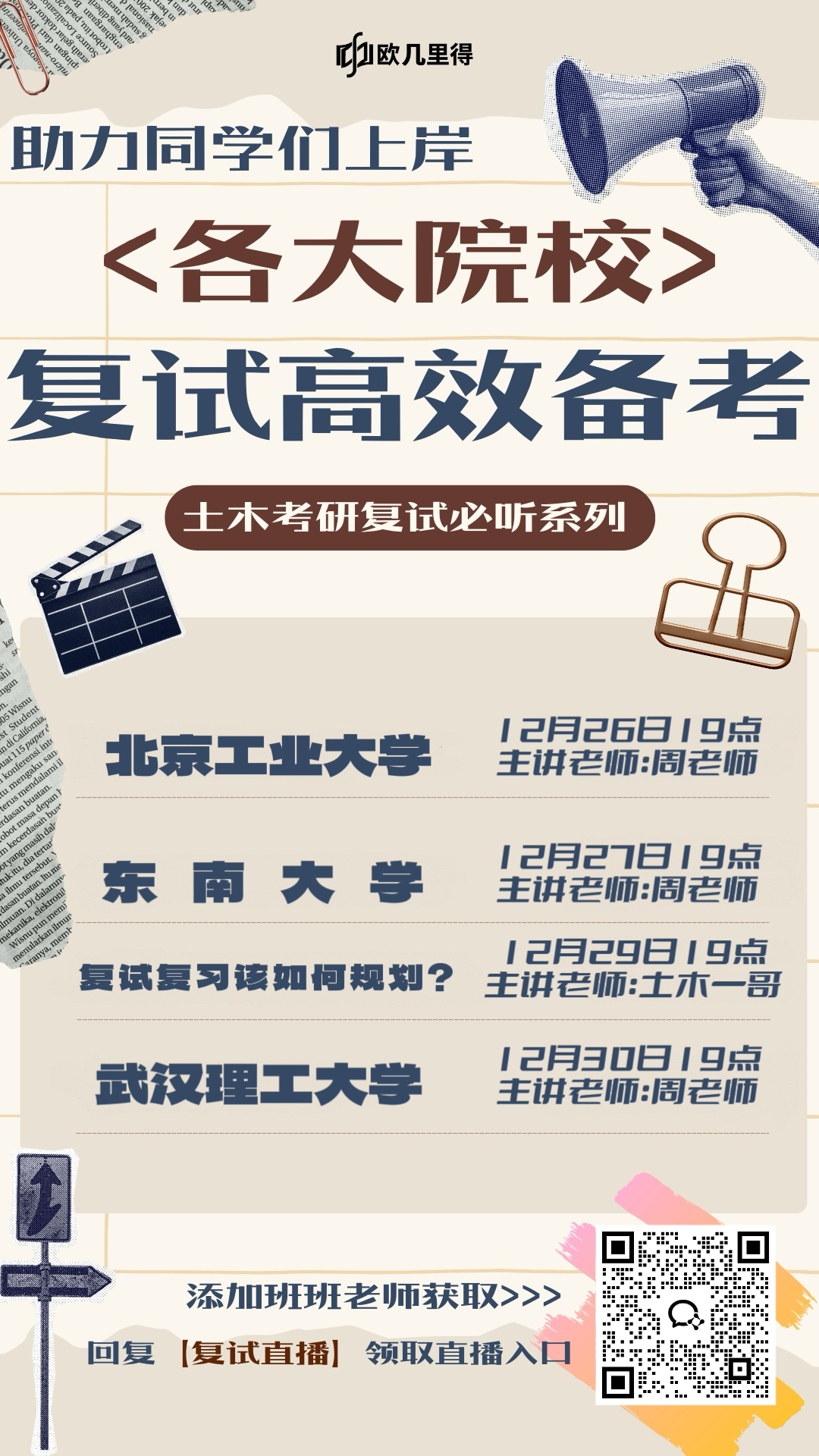 小欧精心为大家准备了土木考研复试的相关资料,以便让大家能够及时的了解复试该如何去准备。
