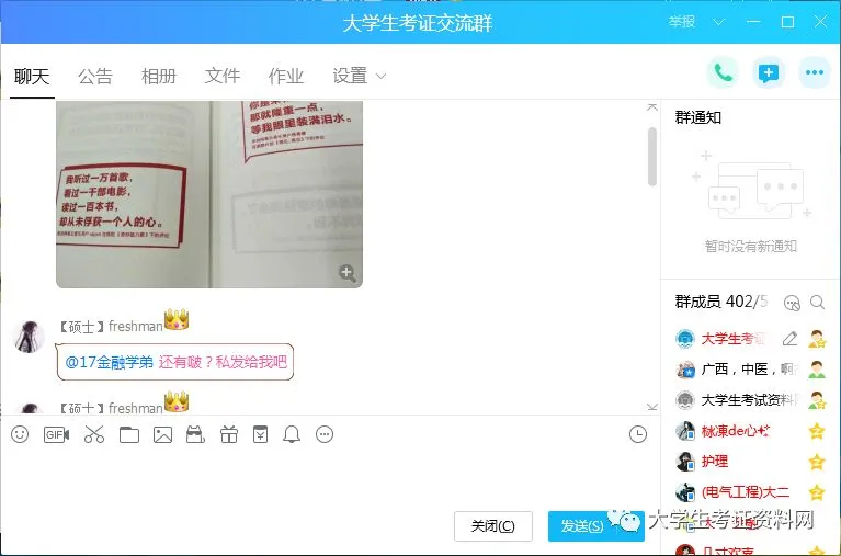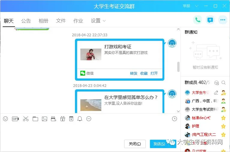 在同学们的帮助下,大学生考证资料网现走进全国各大高校,小证君和团队中的每一位成员也是蛮有成就感的~大家在平台里或长或短也有一段时间了,我们一直在共同奋斗,尽管大家专业不同、学校不同、地域不同,但是我们却能在这里相聚,本身就是一种缘分~谢谢大家对小证君一如既往的支持~你们都是棒棒哒~现在我们为了海纳百川继续扩展~决定在全国范围内把大学生考证资料网服务范围具体化,具体区域设立分站建将资料共享群。使资料的针对性更强~(例如:所属北京即可建立大学生考证资料网北京群)