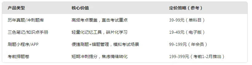 产品矩阵:从“资料包”到“备考解决方案”