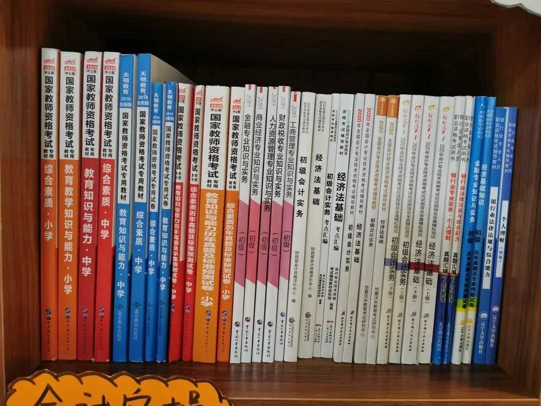 财会专业的同学们快看过来!CPA、审计、初级会计职称、中级会计职称、财务成本管理、资产评估师、税务师、教师资格证资料等,你想要的资料图书室都有!快为大学生涯的考证之旅好好规划一下吧!