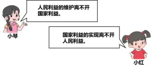 (2)选择小琴的观点。理由 国家利益是人民利益的集中表现,国家独立自主、繁荣富强,国际地位不断提高,人民的生活就充满希望,内心就感到自豪和骄傲。反之,如果国家利益得不到保障,人民利益就会受到损害,人民就会遭受奴役、欺凌和屈辱。所以人民利益的维护离不开国家利益。