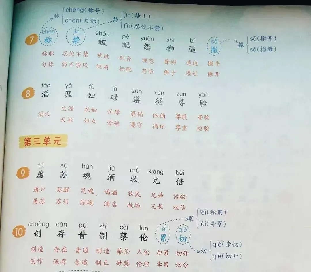 默写多音字,要求每个单元每个多音字的每个音各组一个词并默写。(参考语文书和教材解析类教辅书)掌握不全的要圈画出来,隔日继续巩固。