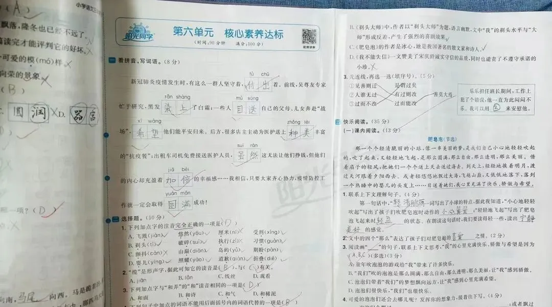 期末复习时,曾经做过的为数不多的教辅材料都可以翻出来,着重分析、复习阅读理解主观阅读题,着重复查所有“错题”——之前为什么错了,正确的答案是怎样的?——对比复盘错题。日常做过的教辅卷子要注意收纳整理(用试卷收纳册收纳),不搞题海,追求质量。复习之后准备找几套模拟卷做做,尤其想找本区过往的考试卷子做做,感受下考法和难度。复习首先要留意老师的指导和推荐的素材,其它再另外适当选择配合。通过复习可以让孩子夯实基础,检验所学,查缺补漏,为每下一个新学期开始做好铺垫。习惯比分数更重要,过程比结果更有意义。预祝孩子们期末考出理想的好成绩!喜欢这篇,一定点赞、在看、转发哦。更多学习干货/资源,我们也在小花生学习群里放好了,扫码👇进群,在群公告里领!