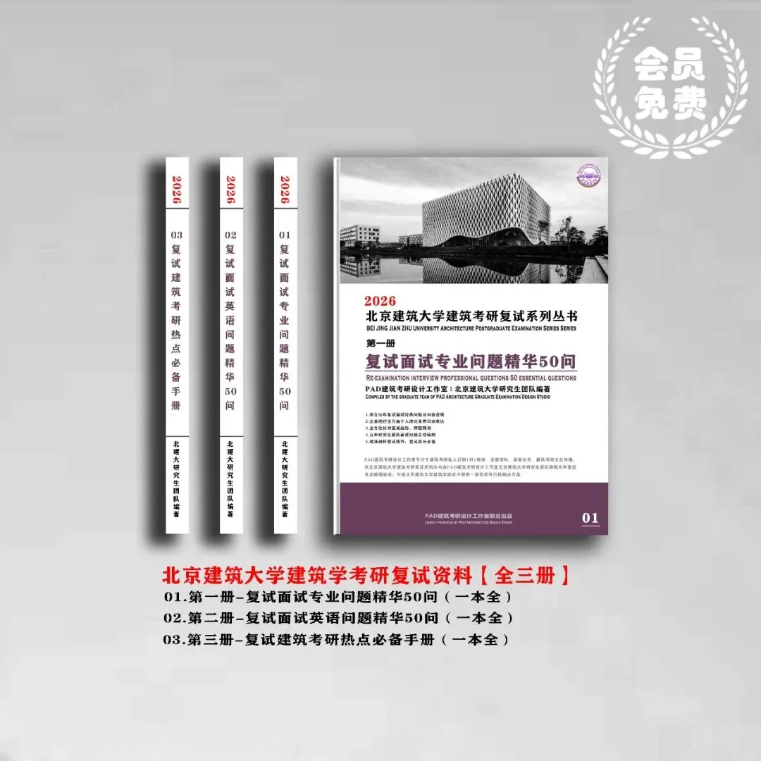 02、复试全套资料:含专业问题精华50问(含答题模板)、英语问题精华50问(含答题模板)、建筑复试面试必备热点手册,26考研必备资料!