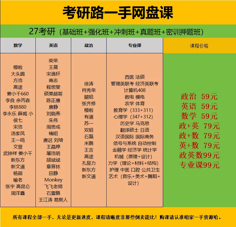 27考研百度云群已建立,目前价格是99元(月底涨价,早进早复习),99元是所有公共课资料,不是单独某一科。