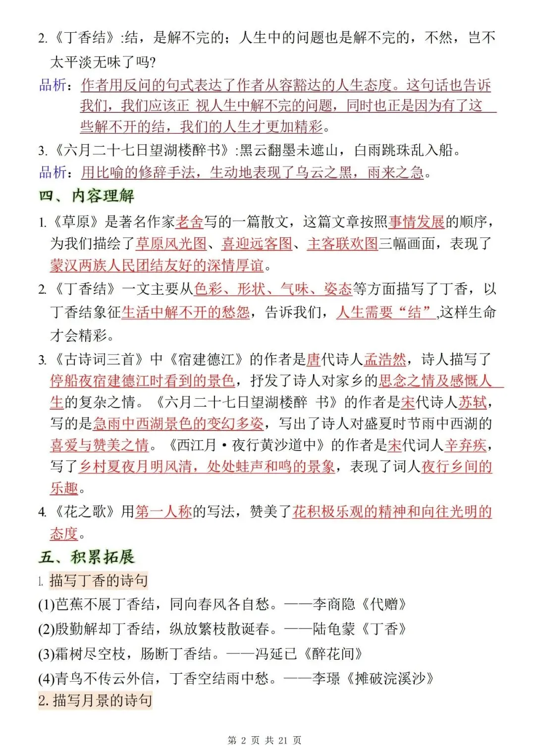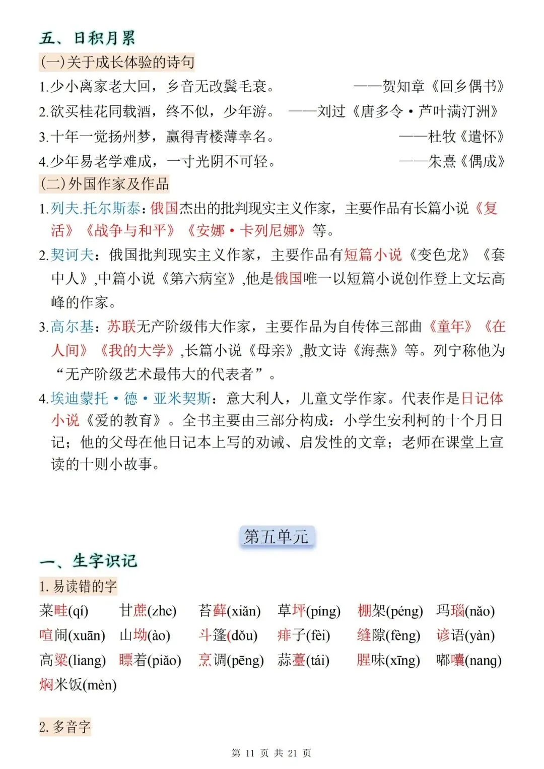 2025年下学期语文期末复习资料