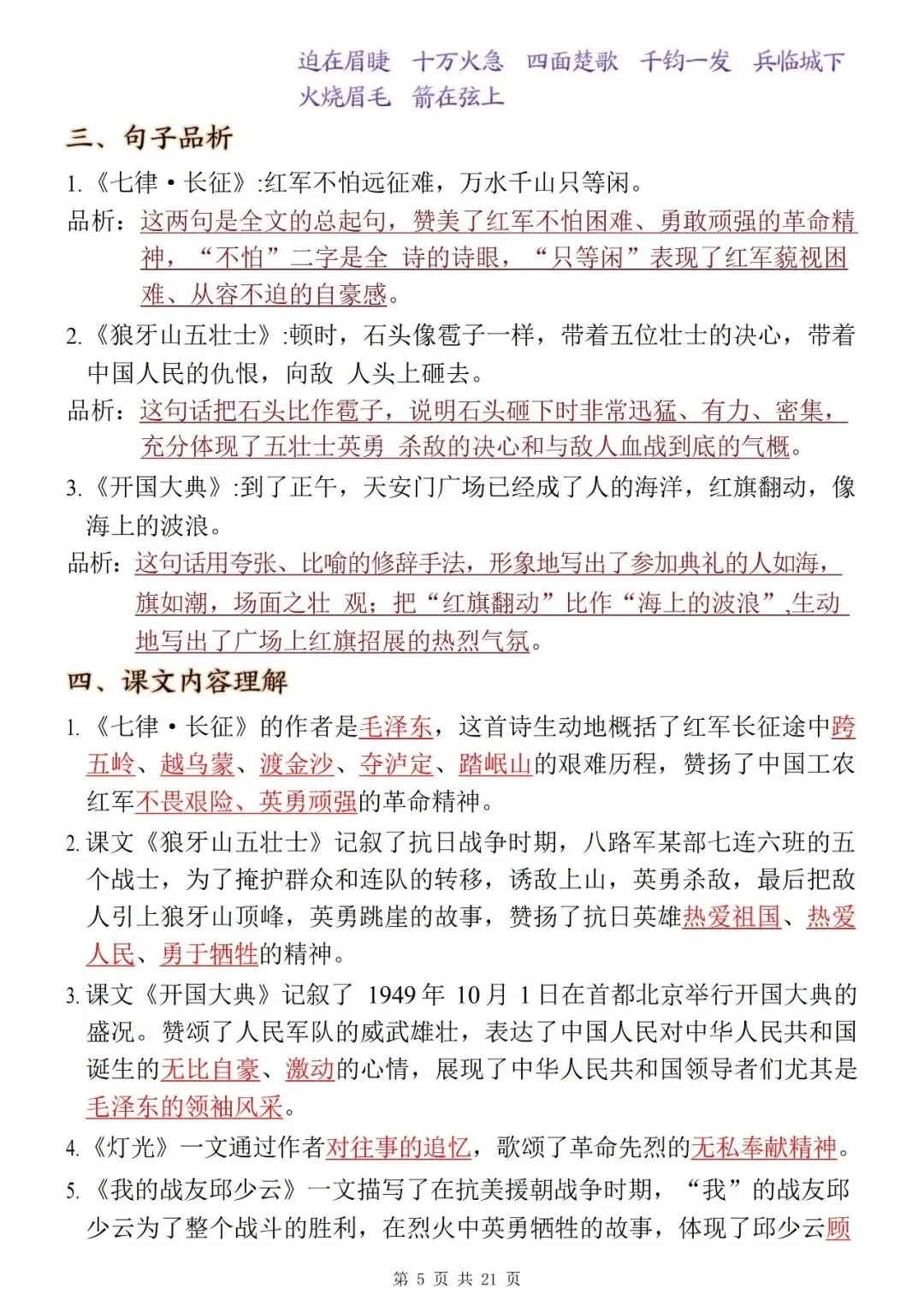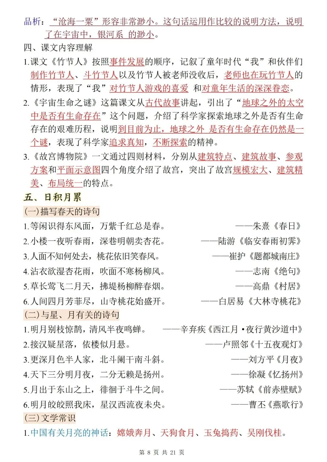【复习资料】五上文言文课外阅读
