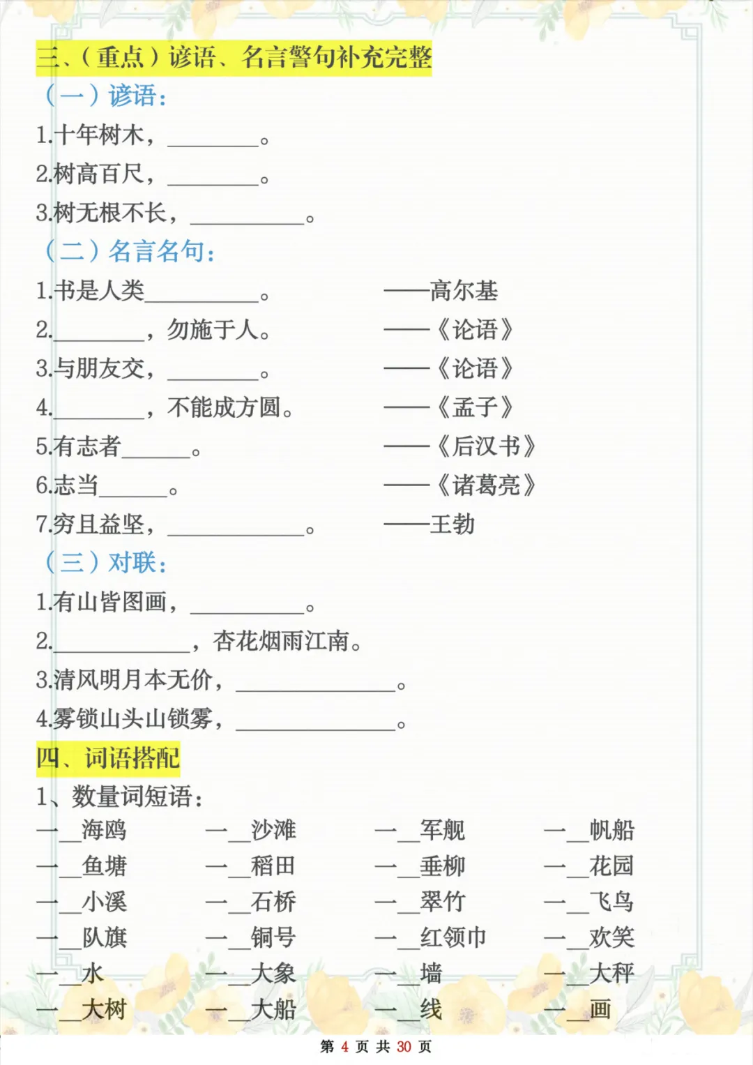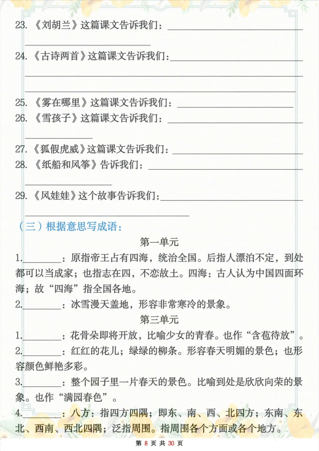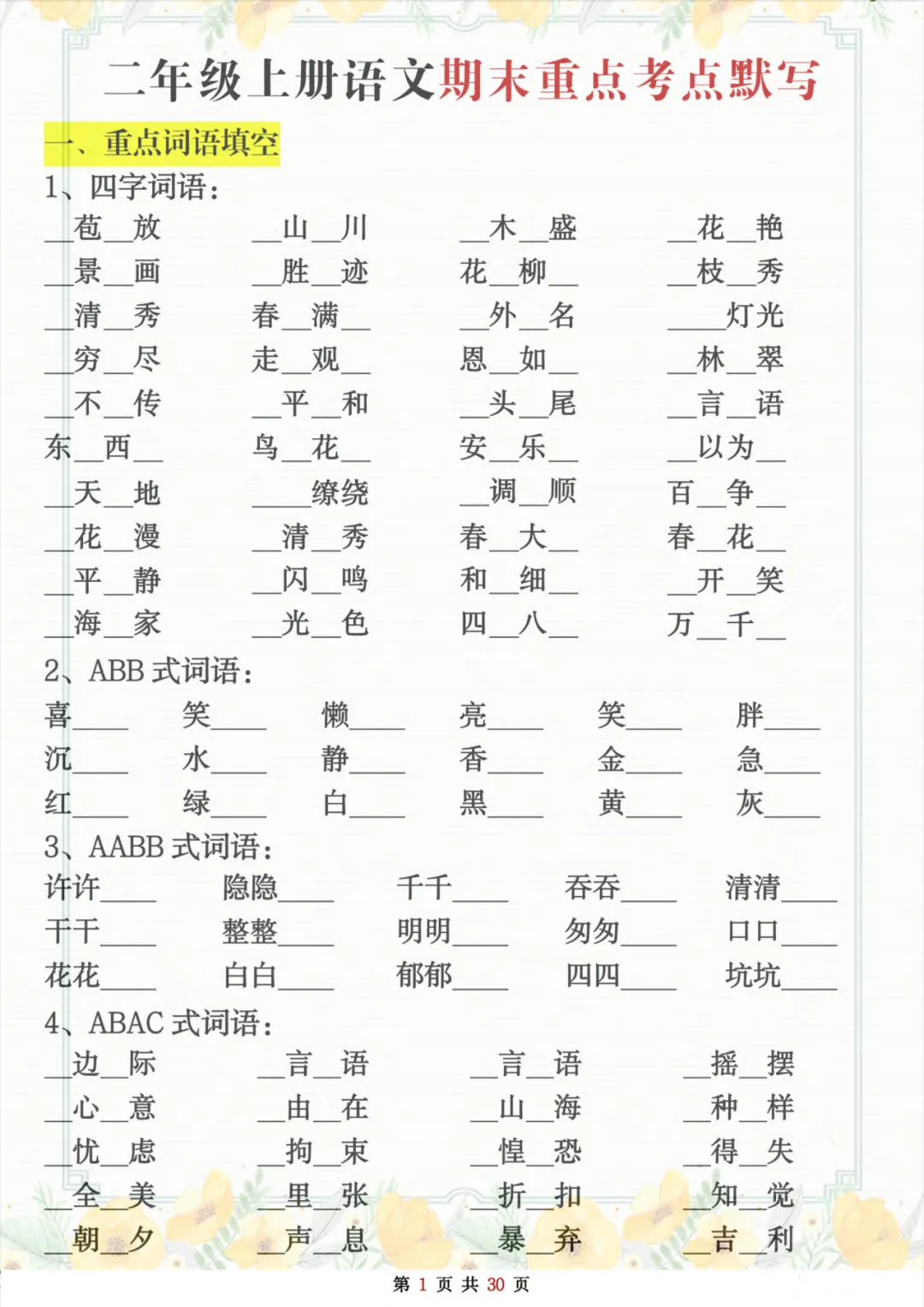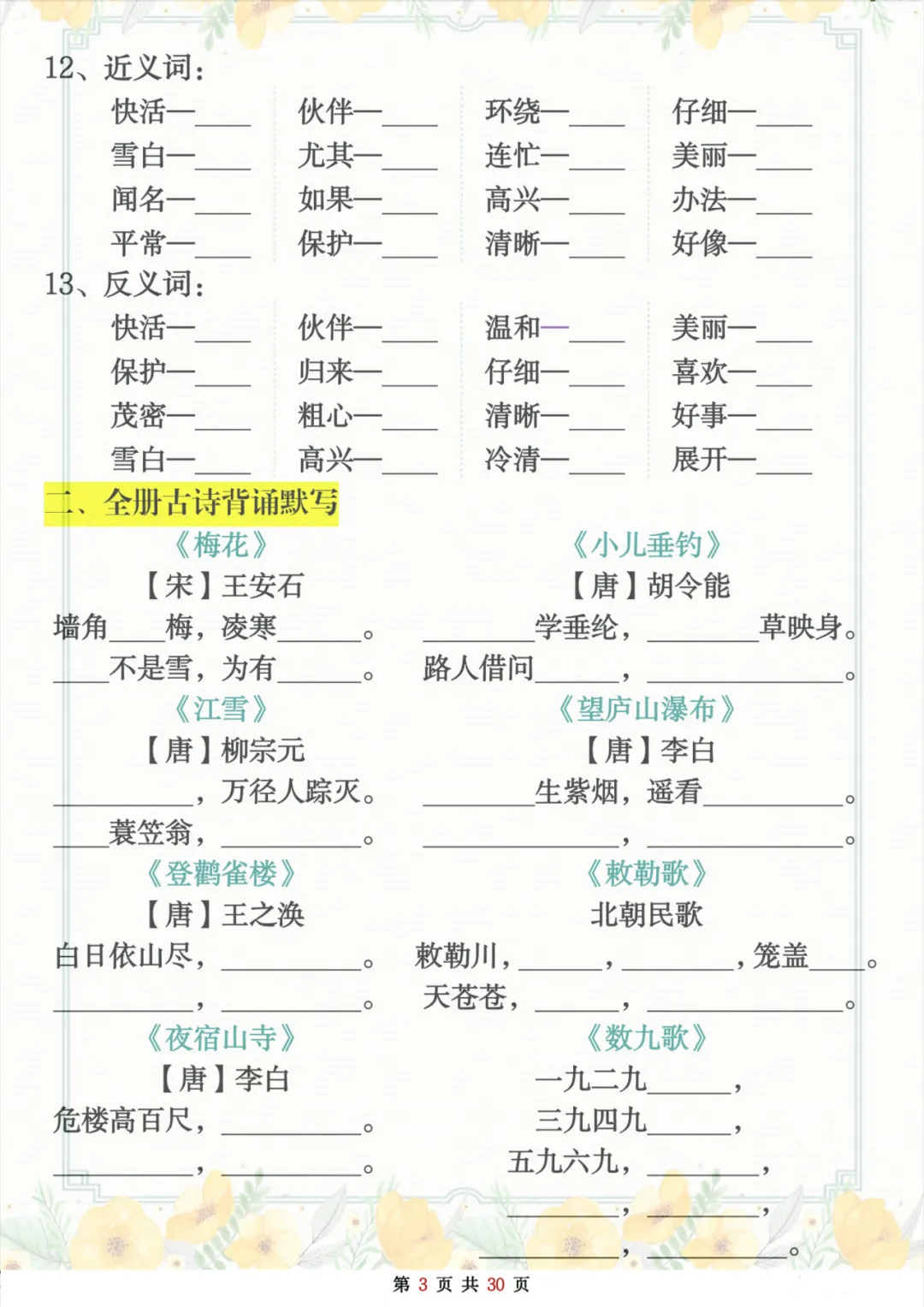 当前位置:首页>复习资料>二年级上册语文期末复习重点考点默写(练习+答案30页),全是基础知识点,建议练习吃透,高清电子档可打印!