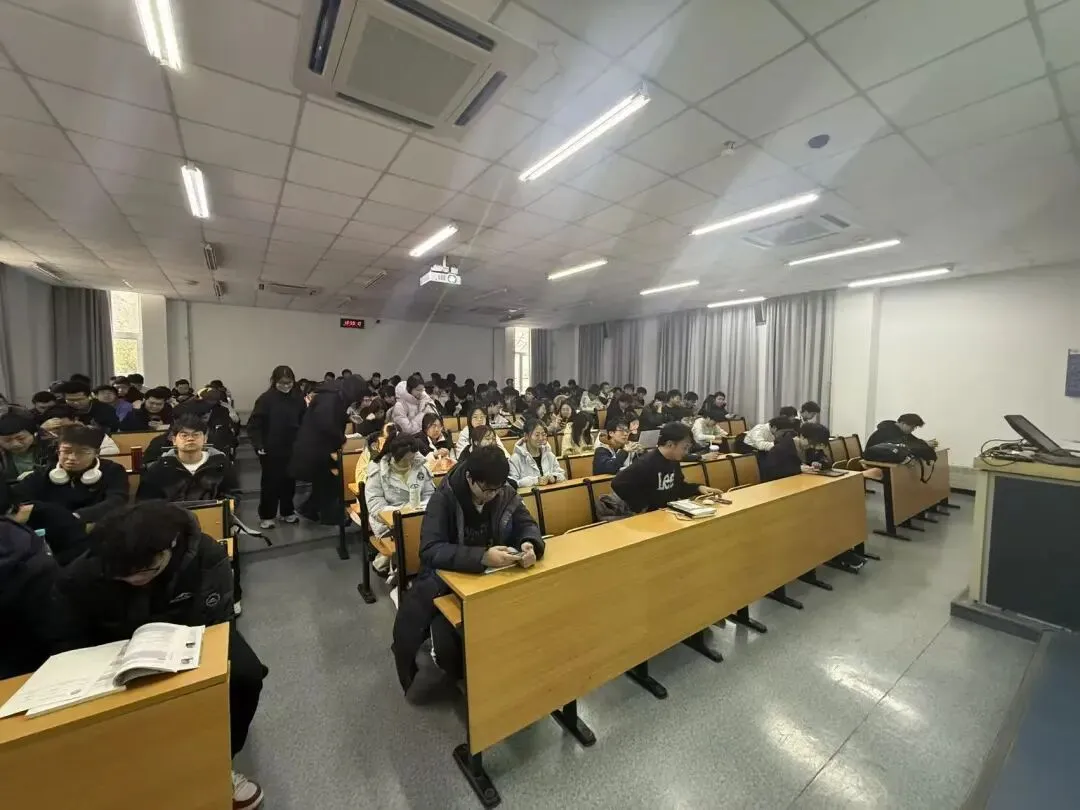 他结合竞赛与学习积累的丰富经验,为同学们拆解知识点逻辑、梳理知识体系,同时提供了实用的复习规划与解题思路建议。现场学习氛围浓厚,同学们积极记录、互动提问,纷纷反馈收获颇丰,对期末备考更有信心。