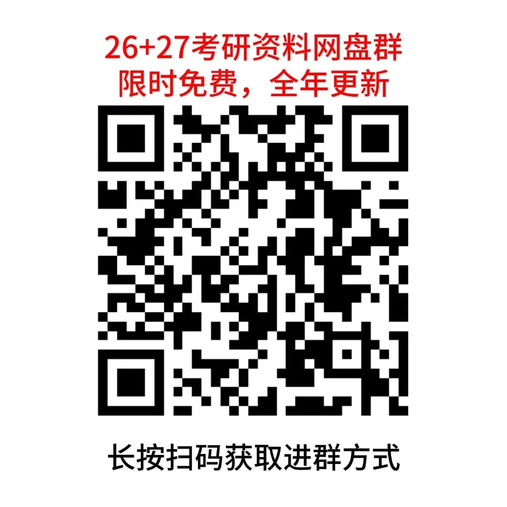 26+27考研网课资源都整理好了,考研人都在这个群里,我把整理好的考研资料都放在百度网盘群和夸克网盘了,每天同步更新电子资料和视频网课,有需要的宝子们赶紧扫码进群哦