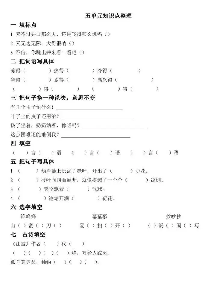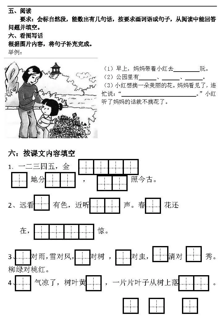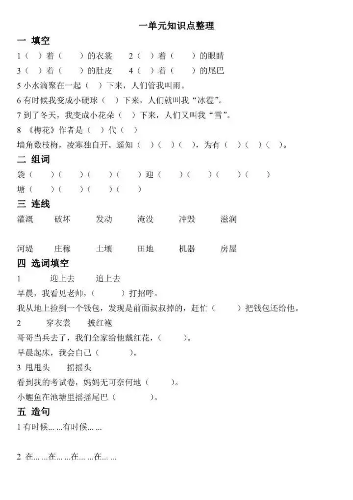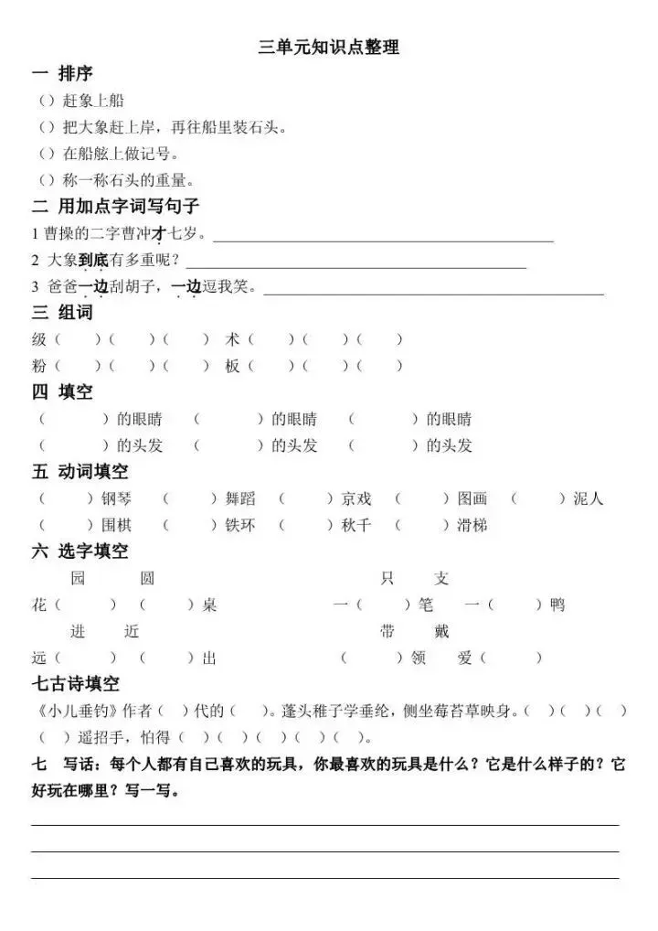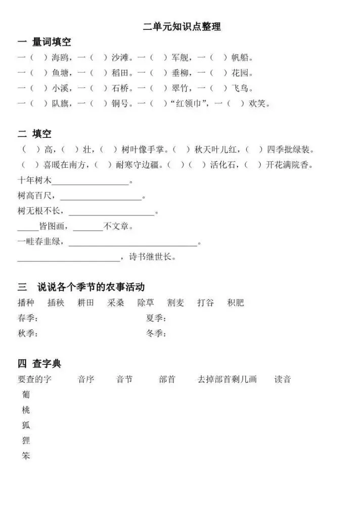 部编语文二年级上册各单元知识点训练