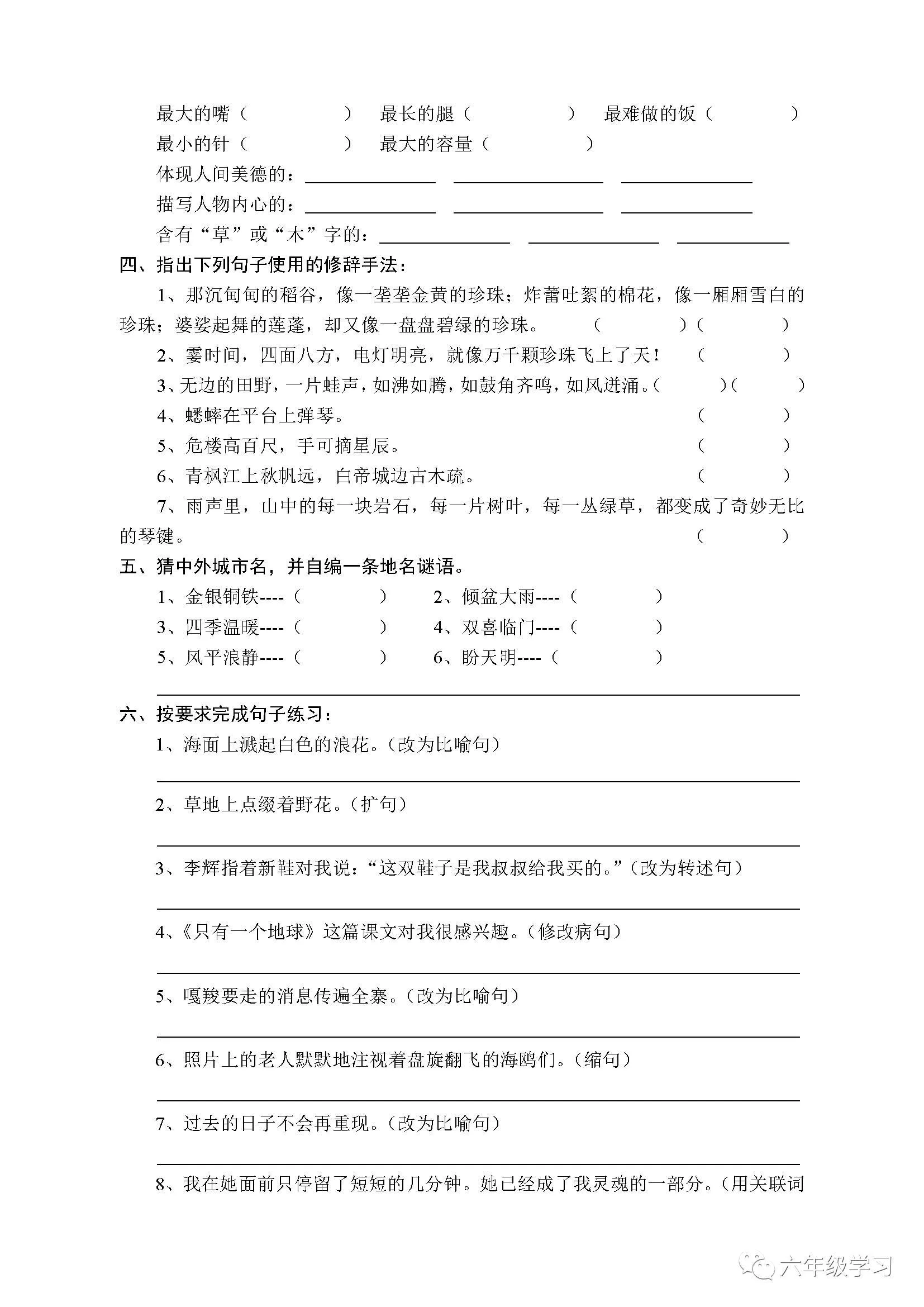 转自:小学生学习、开心作文、小学三年级语文、小学生学习帮、师如四季研修团队、六年级学习