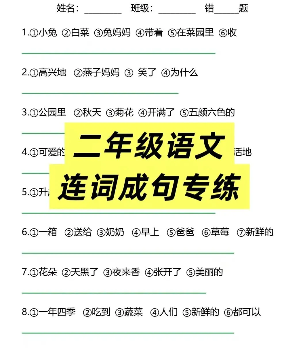 语文:拼音巩固(特别是前后鼻音、平翘舌)、字词句基础(组词、造句、近反义词)、看图写话入门专项。