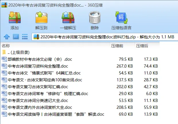 2020年中考古诗词复习资料完全整理doc资料打包.zip