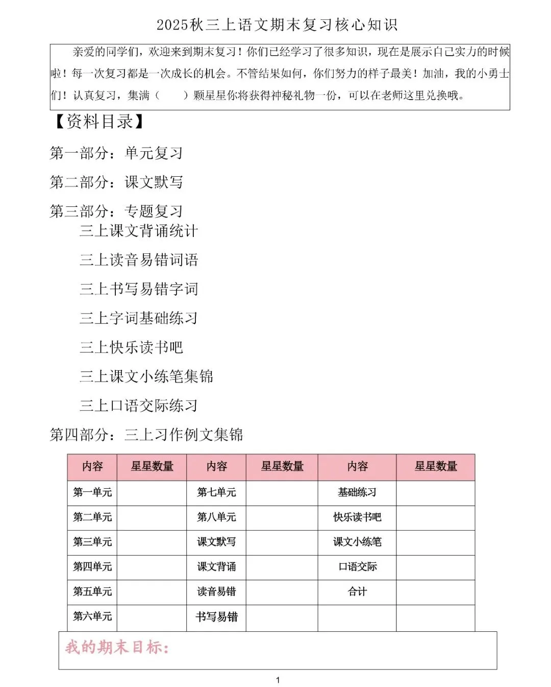 走走停停,三上复习资料打印了几次,核对了三次,终于还是做出来了。这个是封面,和四五六年级一样的: