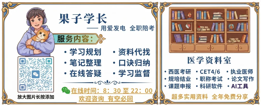 回复【果子】,添加果子学长的私人微信。拉你加群一起学习,有什么问题也可以直接私聊学习。一起加油,我是全职陪考的果子学长!