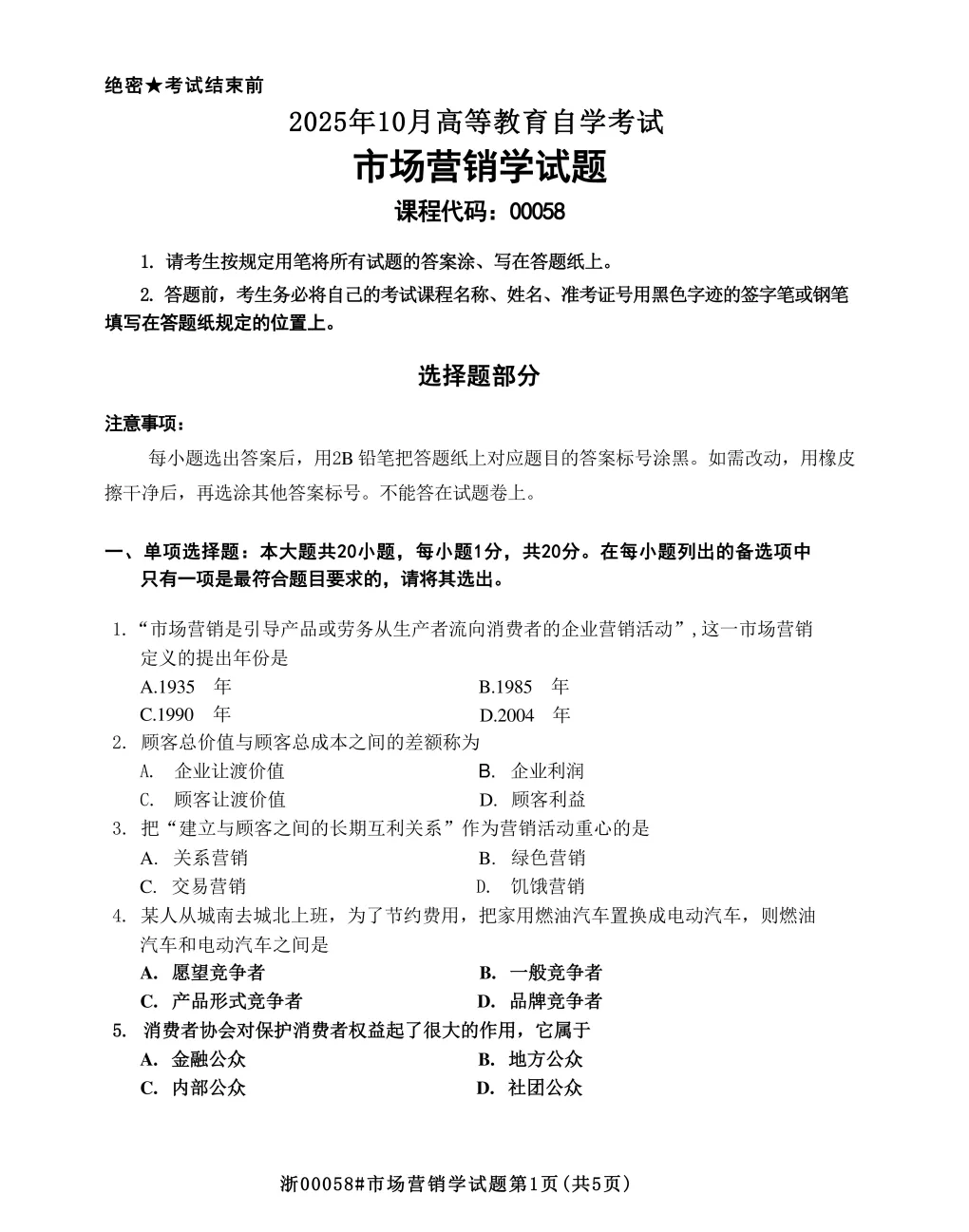 资料二:自考00058《市场营销学》历年真题及答案【更新至25.10】