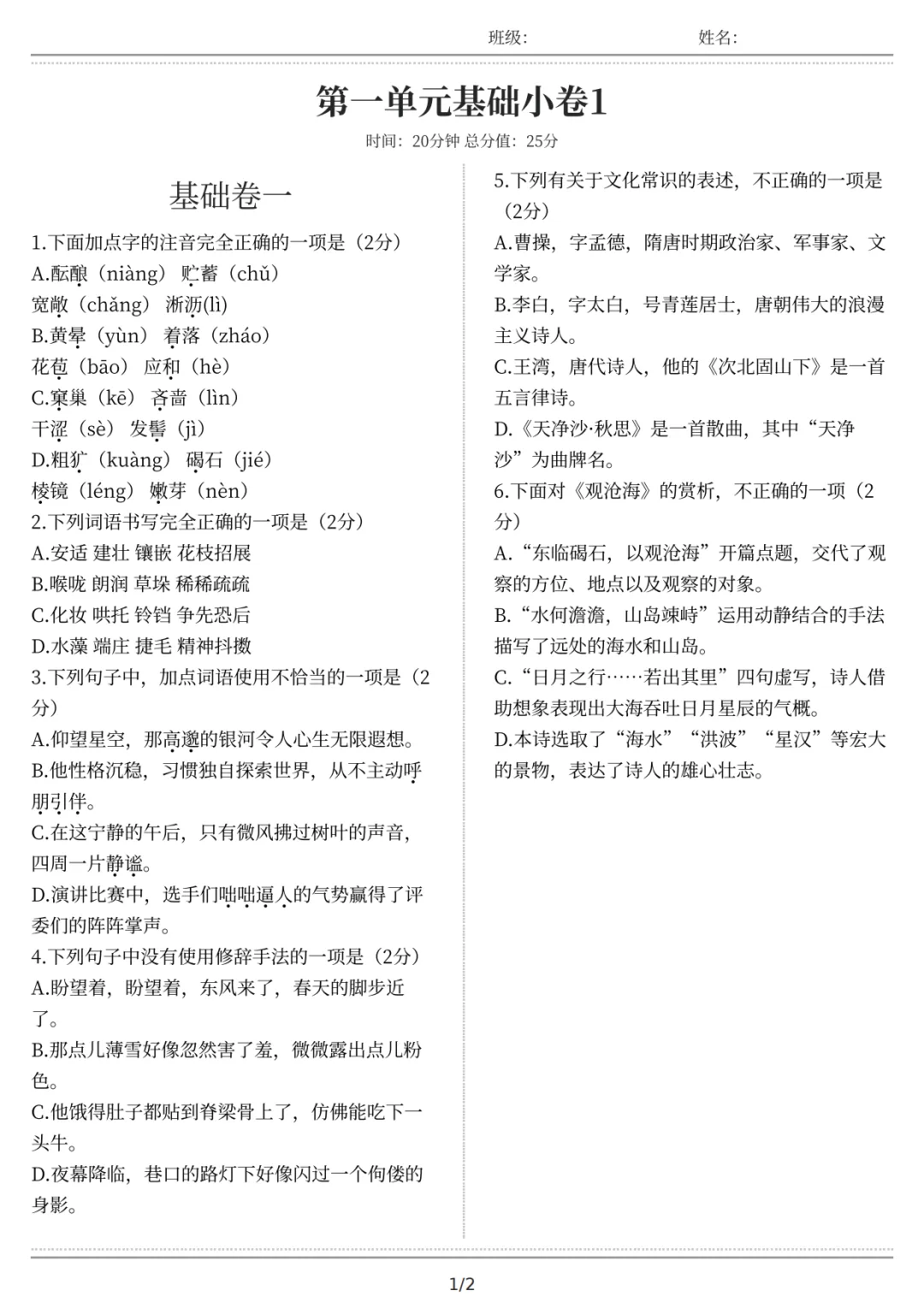 12首古诗词鉴赏梳理示例图片