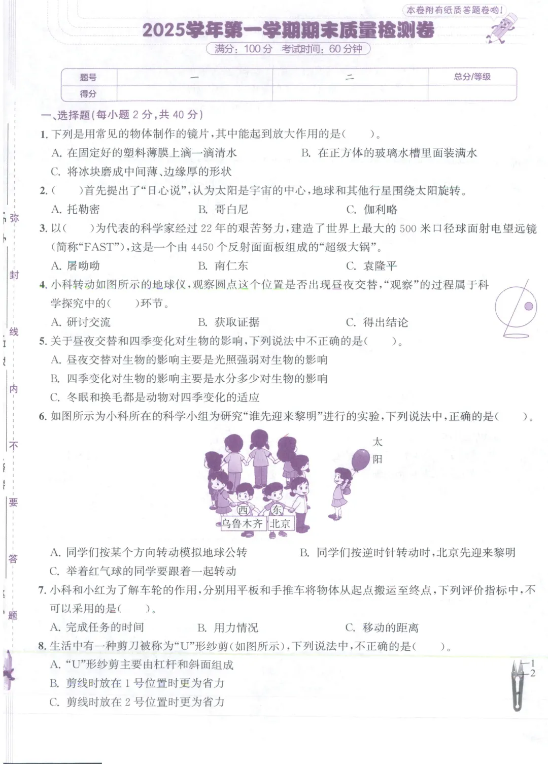 新版六年级上册科学期末试卷16套,有答题卡:1-3单元卷3套;期末真题卷7套,质量检测卷1套,专项提高卷5套