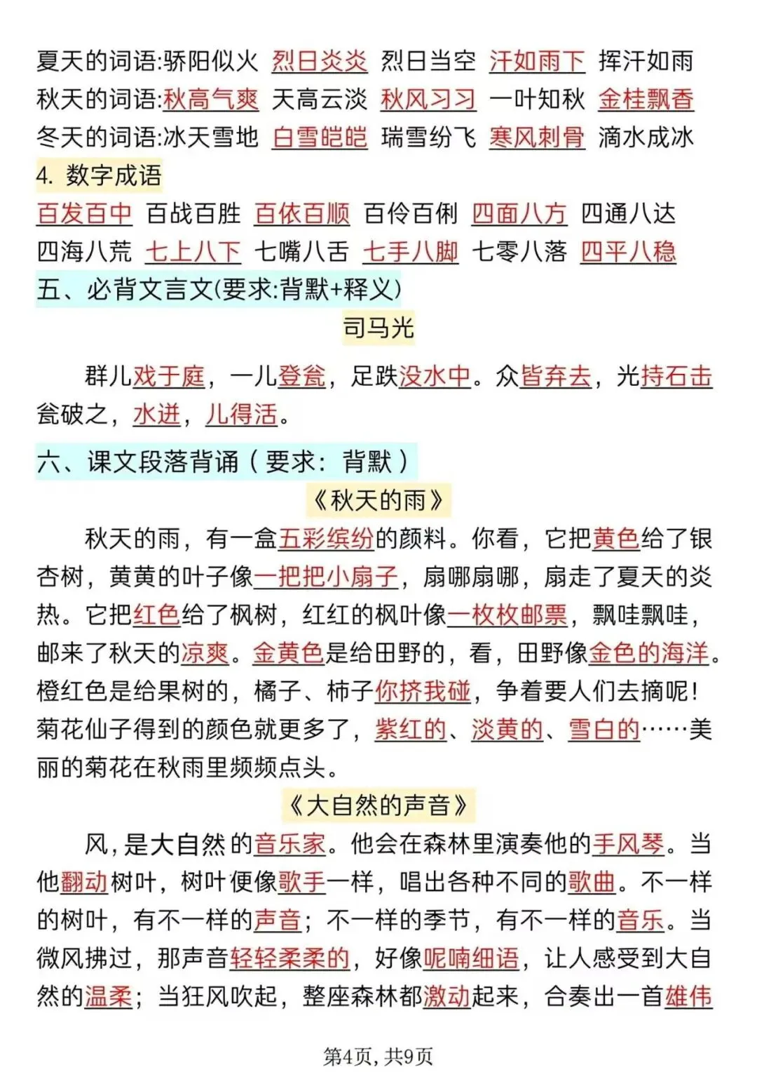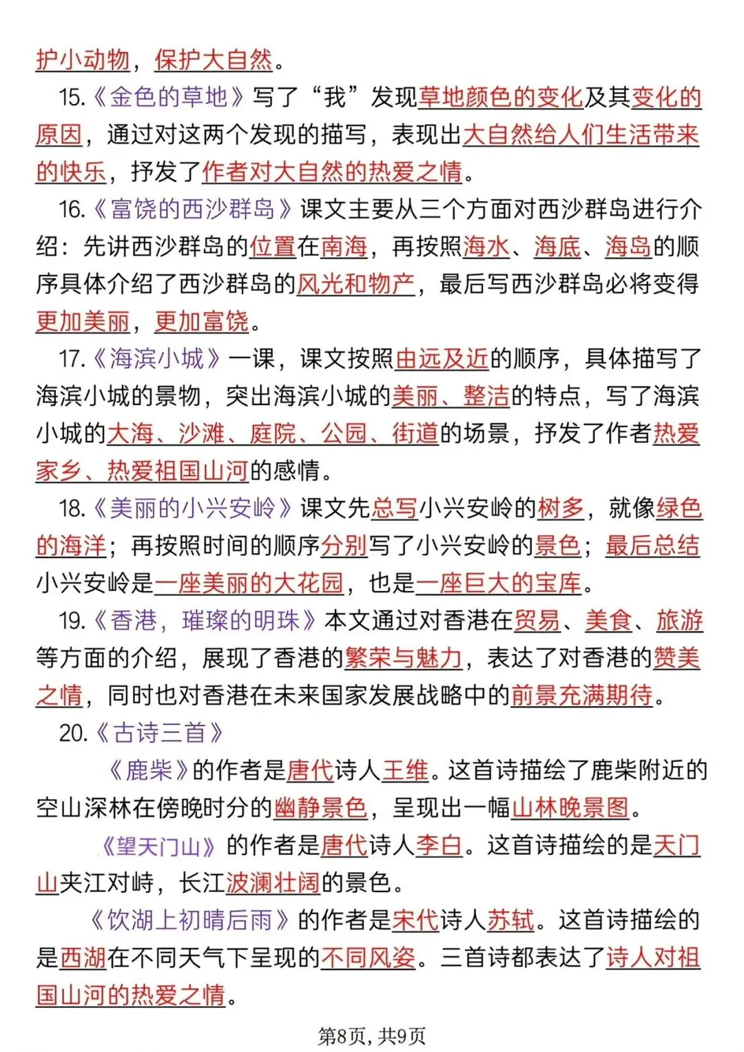 三年级上册语文全册知识点汇总,期末考试复习资料电子版可打印!