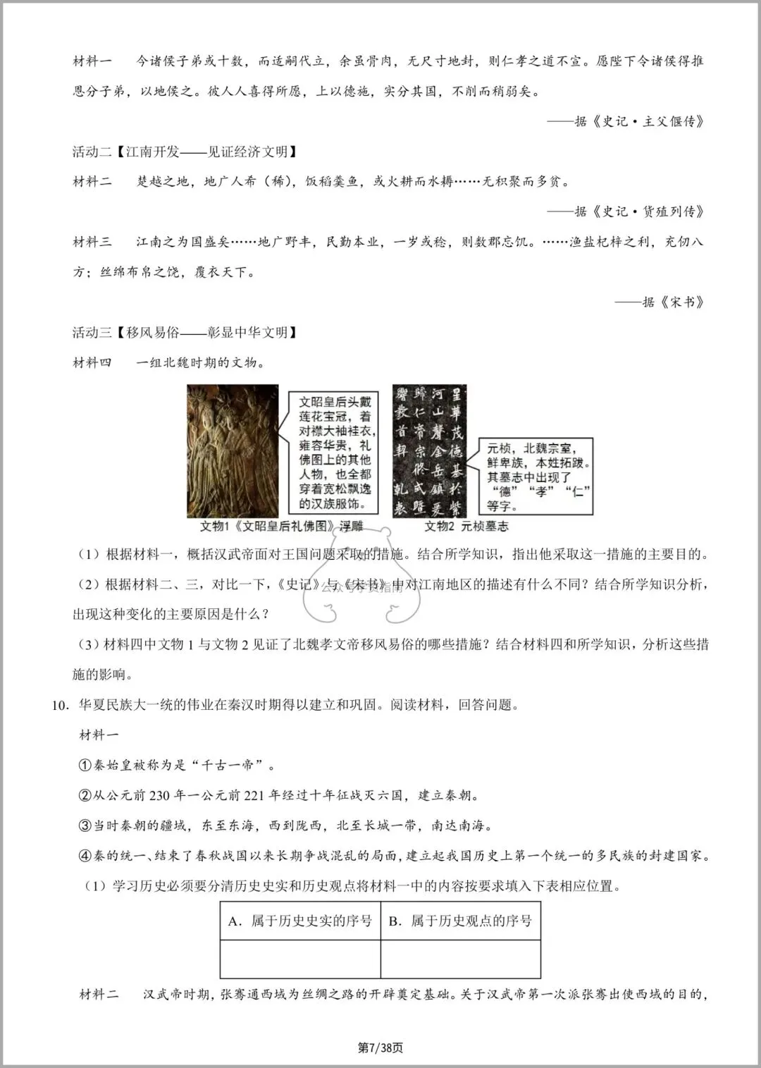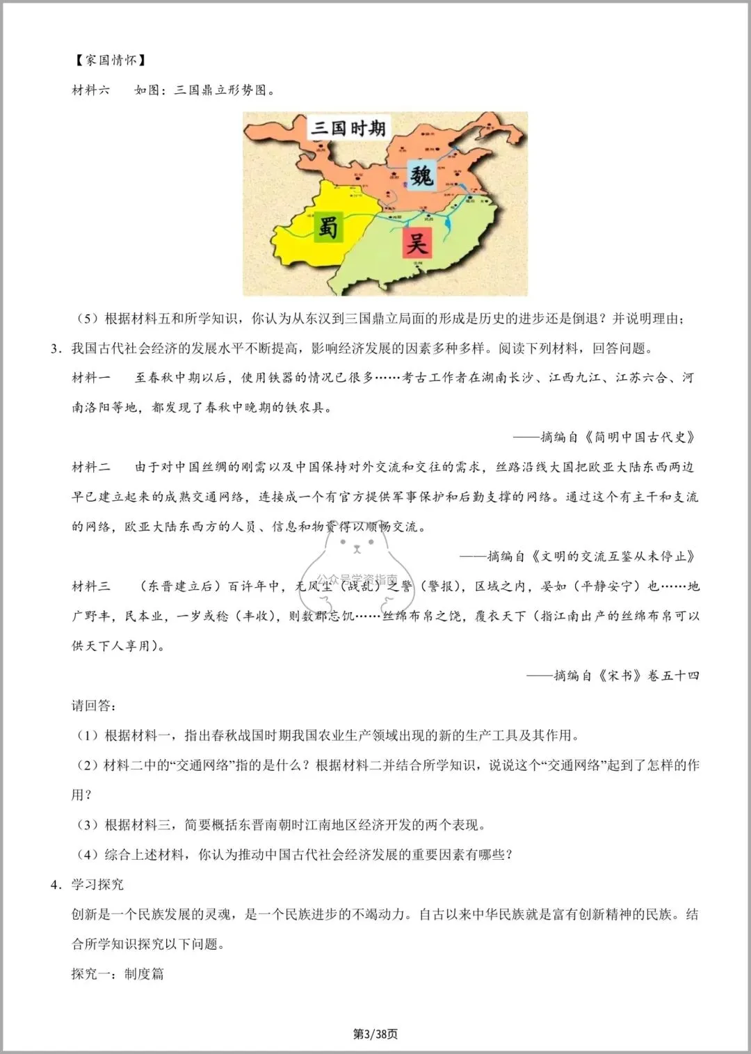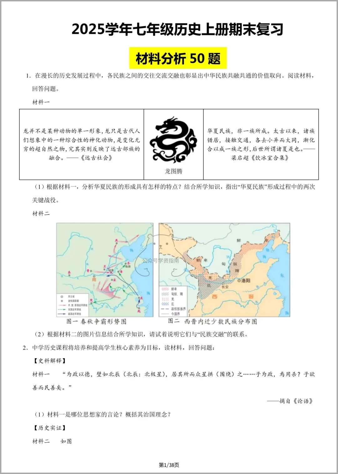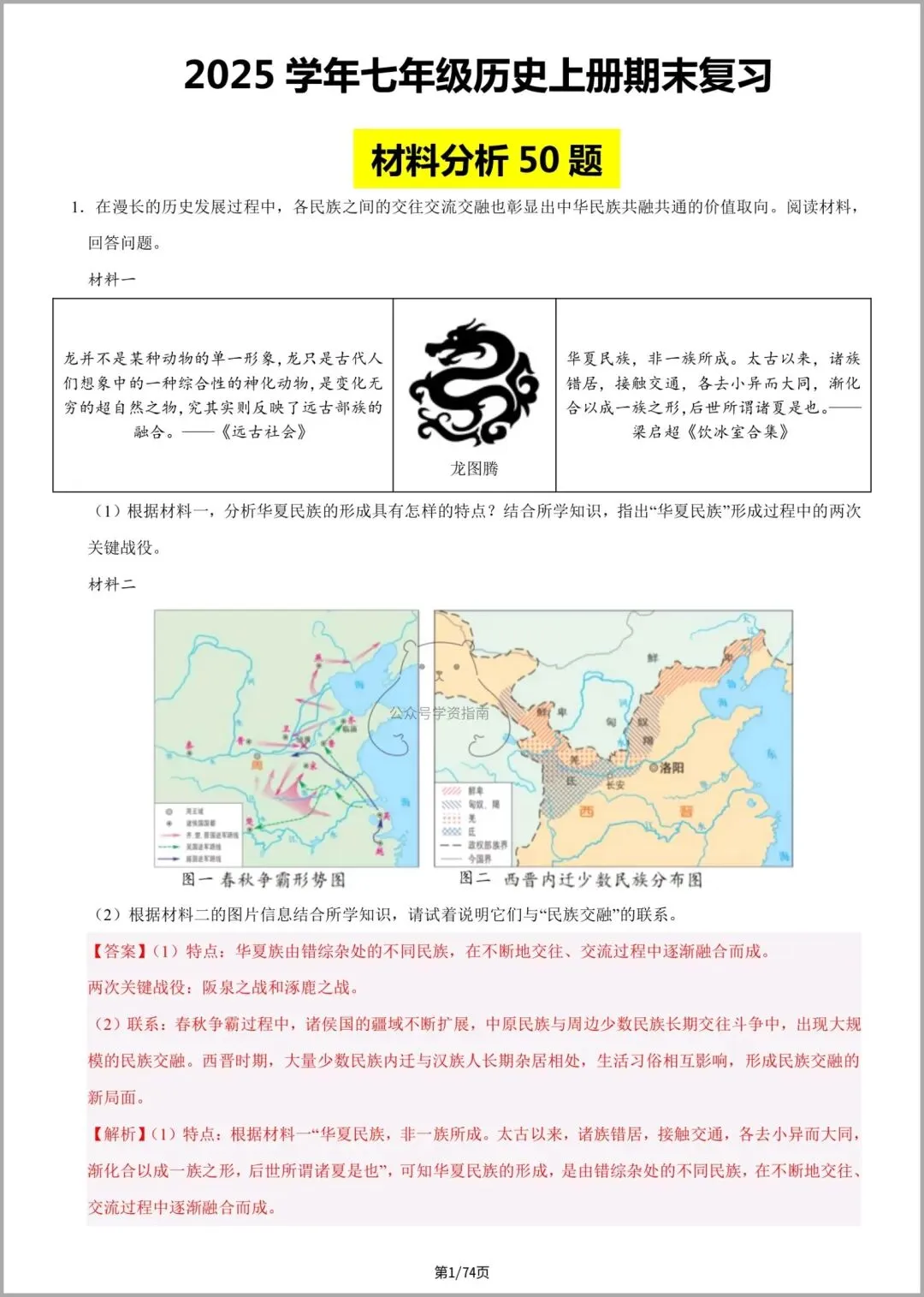今日分享:2025人教版七年级上册(历史)期末复习重点材料分析题50题加解析,有电子版可下载打印!版权声明