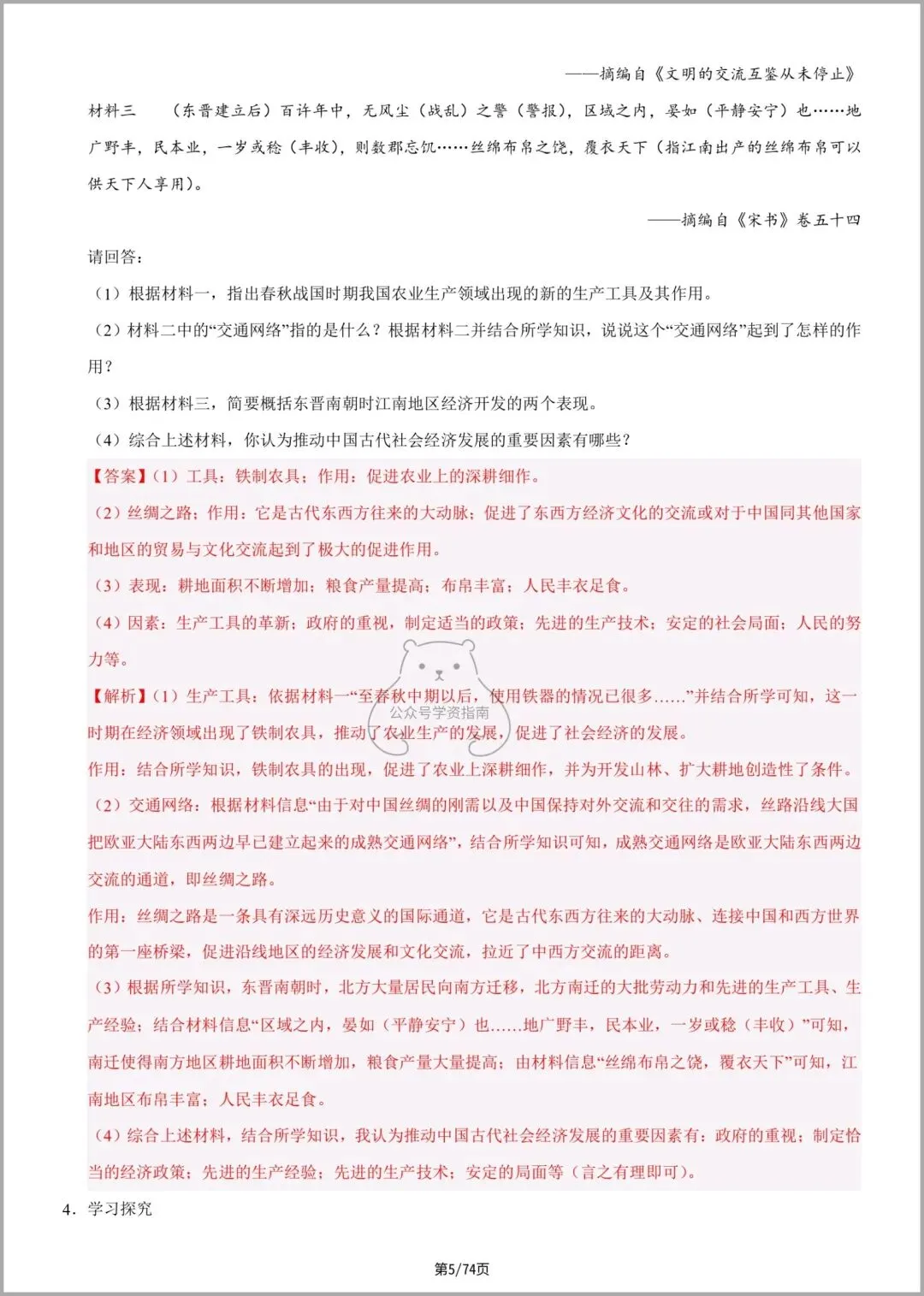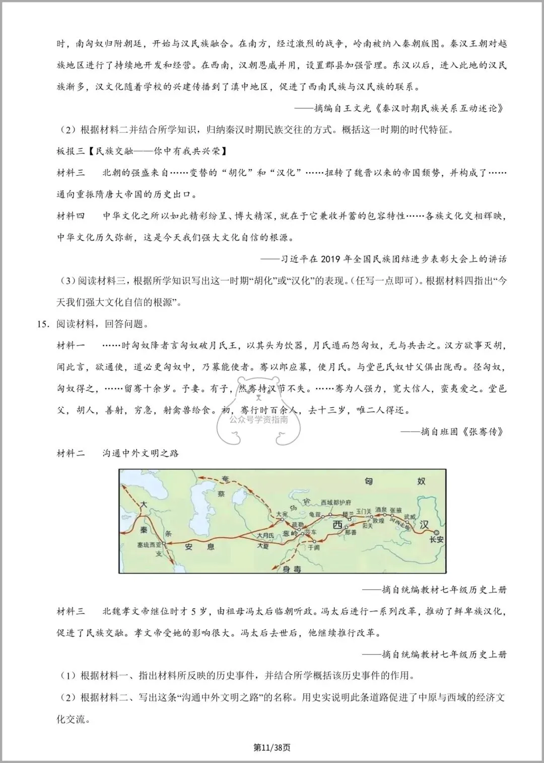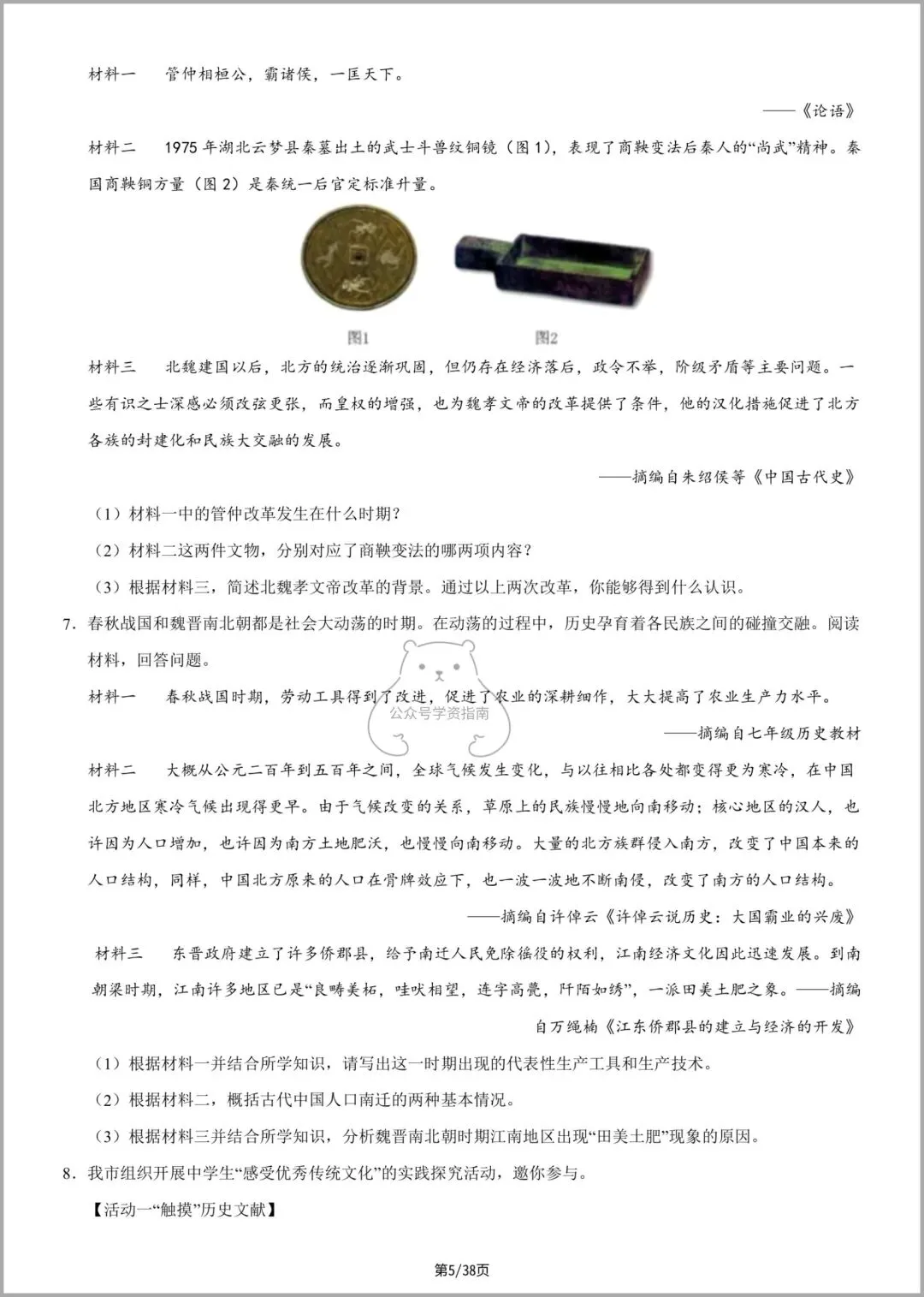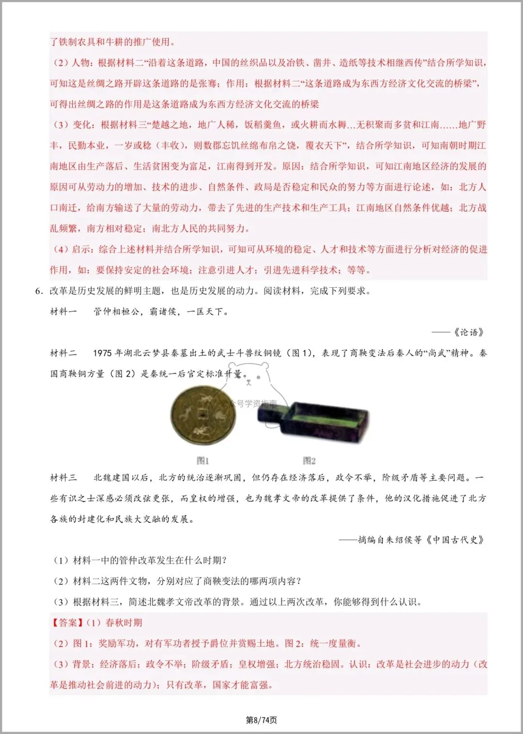 今日分享:2025人教版七年级上册(历史)期末复习重点材料分析题50题加解析,有电子版可下载打印!版权声明