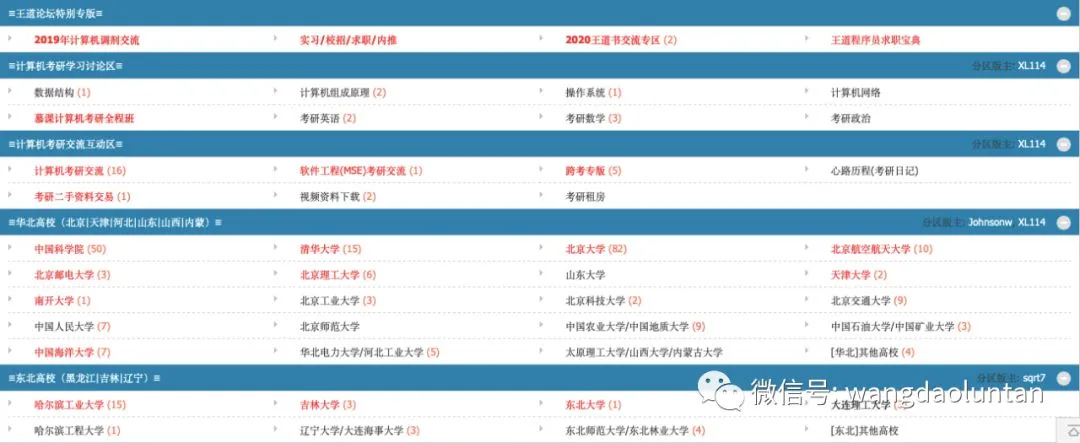 首先,打开王道论坛(www.cskaoyan.com)首页,可以看到上面是考研相关的科目、专业各个版块,下面都是不同区域各大高校的版块,这里先注册登陆一下哦。