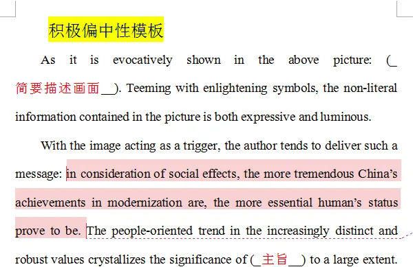 阅卷老师指定的作文模板: