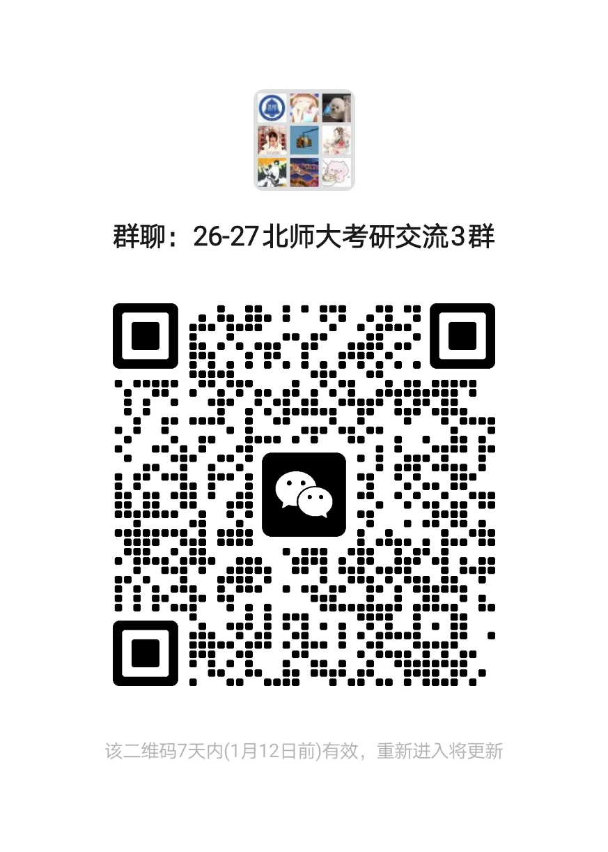 更多北京师范大学考研相关问题咨询及专业课vip一对一定制辅导课程详情,请扫下方微信二维码,北师大直系高分学长学姐免费答疑解惑!!!