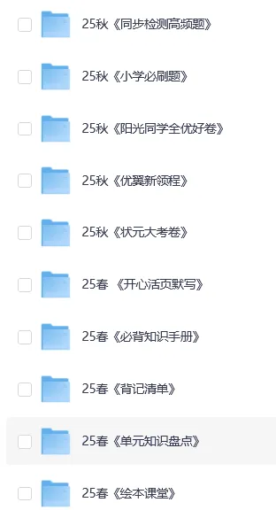 当前位置:首页>复习资料>2025秋 小学全科目《预习复习资料》整理汇总(网盘打包下载)1-6年级上下册/语文/数学/英语/科学/道法一二三四五六年级 期末必备