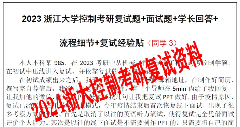 4,2024浙江大学控制考研复试流程+复试经验(学长2考到的)
