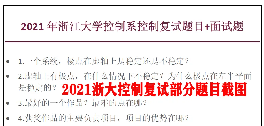 1,2024浙大控制考研复试题目+面试题(学长1考到的)2,2024浙大控制考研复试流程+复试经验+复试雷点+复试录取比(学长1考到的)