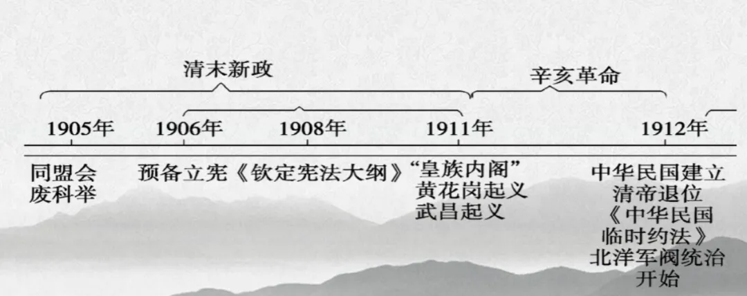 (1)背景:《辛丑条约》签订,民族危机加深,中央集权式微,革命风起云涌。