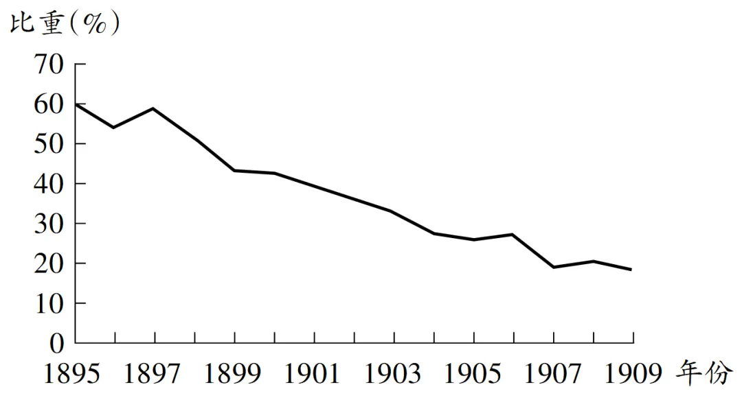 8.(2025·山东高考·8)图2为1895—1909年英国在华公司数占外国在华公司总数的比重变化情况。导致变化的原因是( )