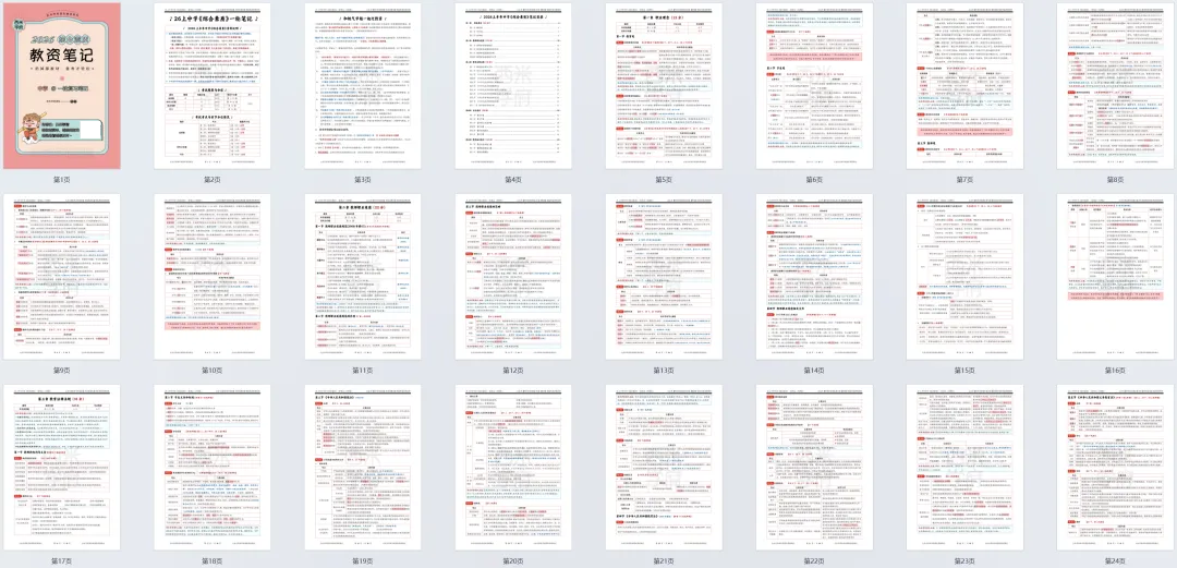 考点模块用「红框+色块」进行区分,这样一眼就能锁定对应章节的重点点拨、助记口诀使用「浅蓝色块」进行区分,再也不用费劲巴拉的找知识点关键信息了26上半年笔记和之前一样,标注了25下半年考的最新真题