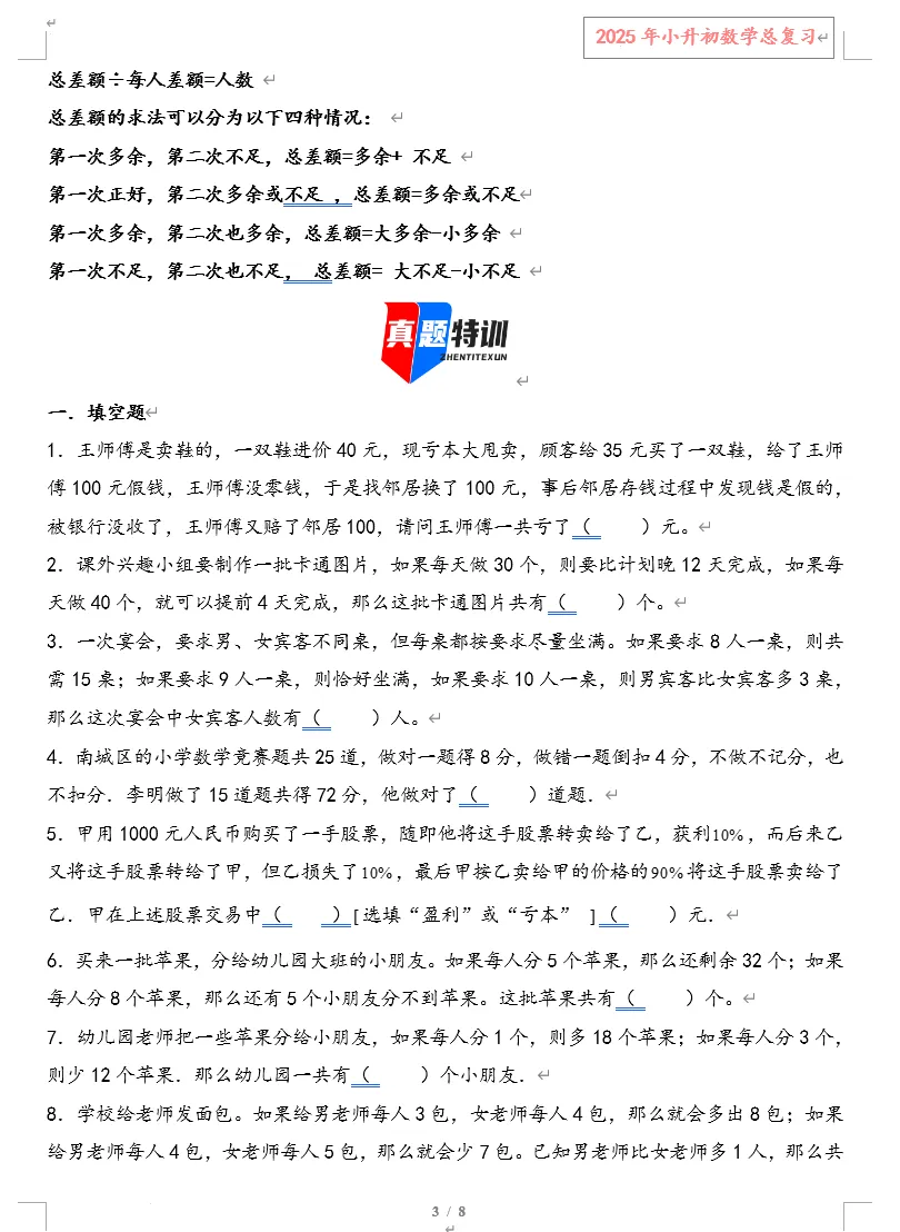 专题24 盈亏问题(导图+知识梳理+35道真题特训)(教师版)