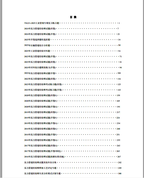 《2026管道检验师复习题库》收录了2016年至今,跨度近十年的压力管道检验师考试闭卷与开卷真题,并特别对早期真题依据新标准进行了改编,确保了题目的时效性和参考价值。