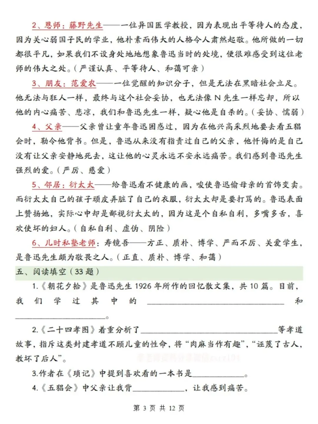 必读名著《朝花夕拾》考点总结及练习