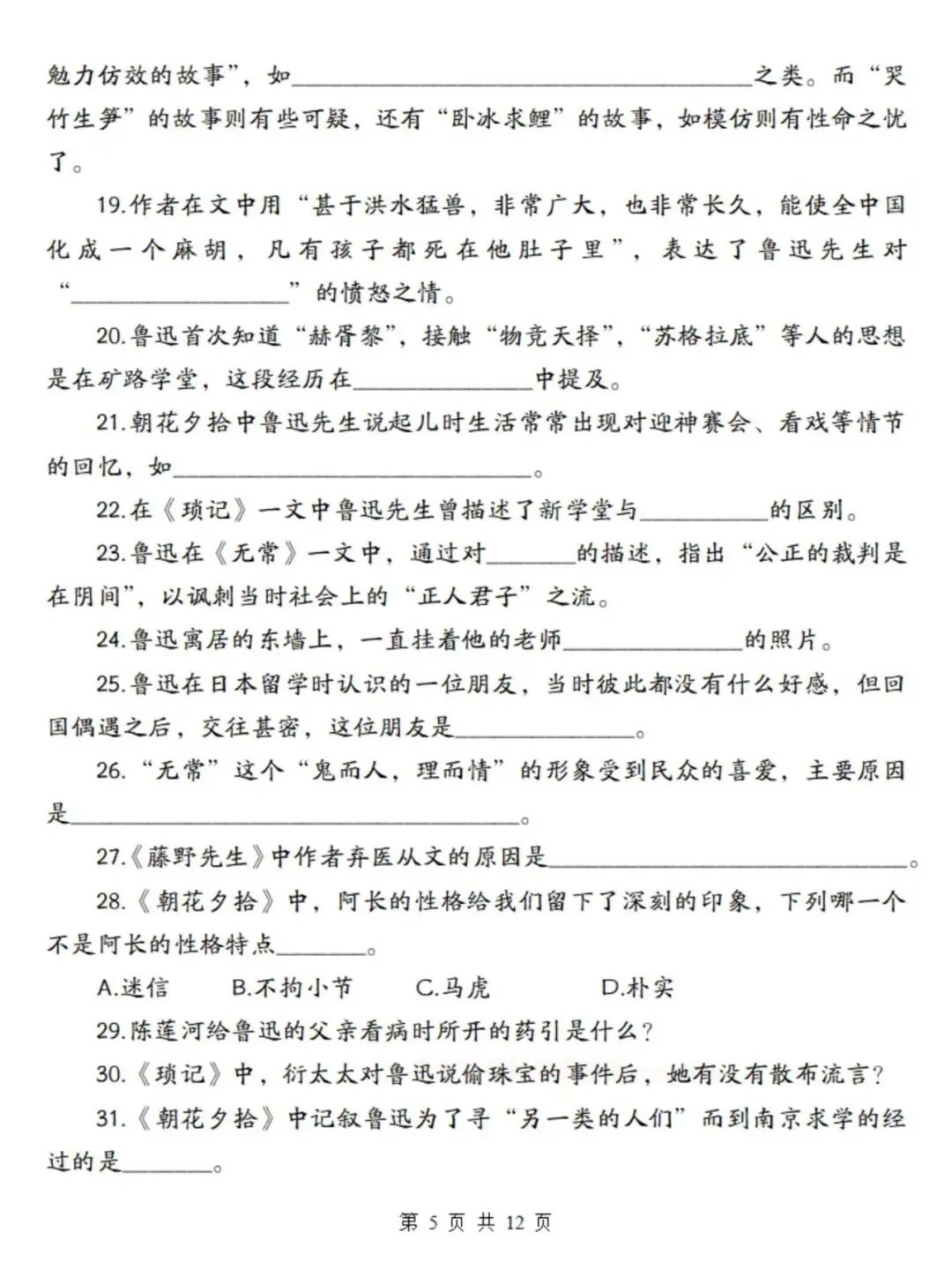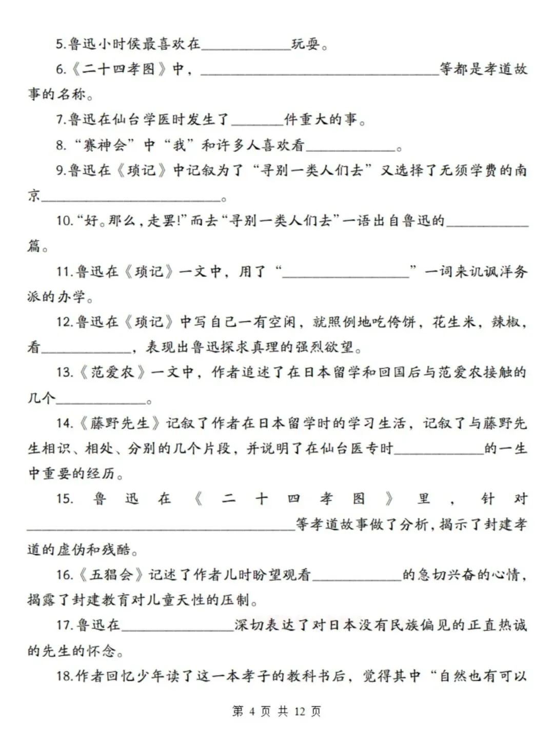 >七上语文期末复习重点必备:必读名著《朝花夕拾》考点总结及练习