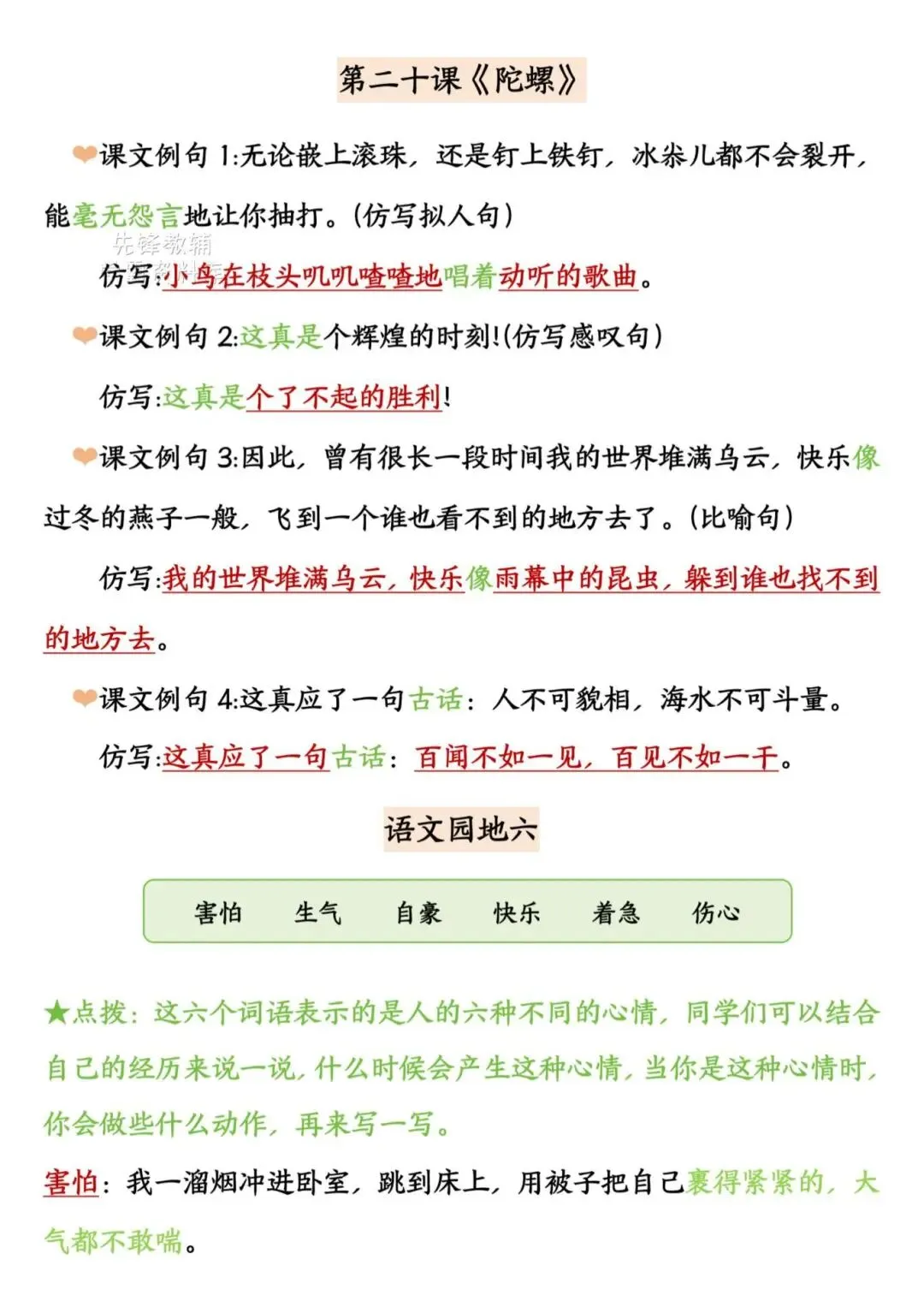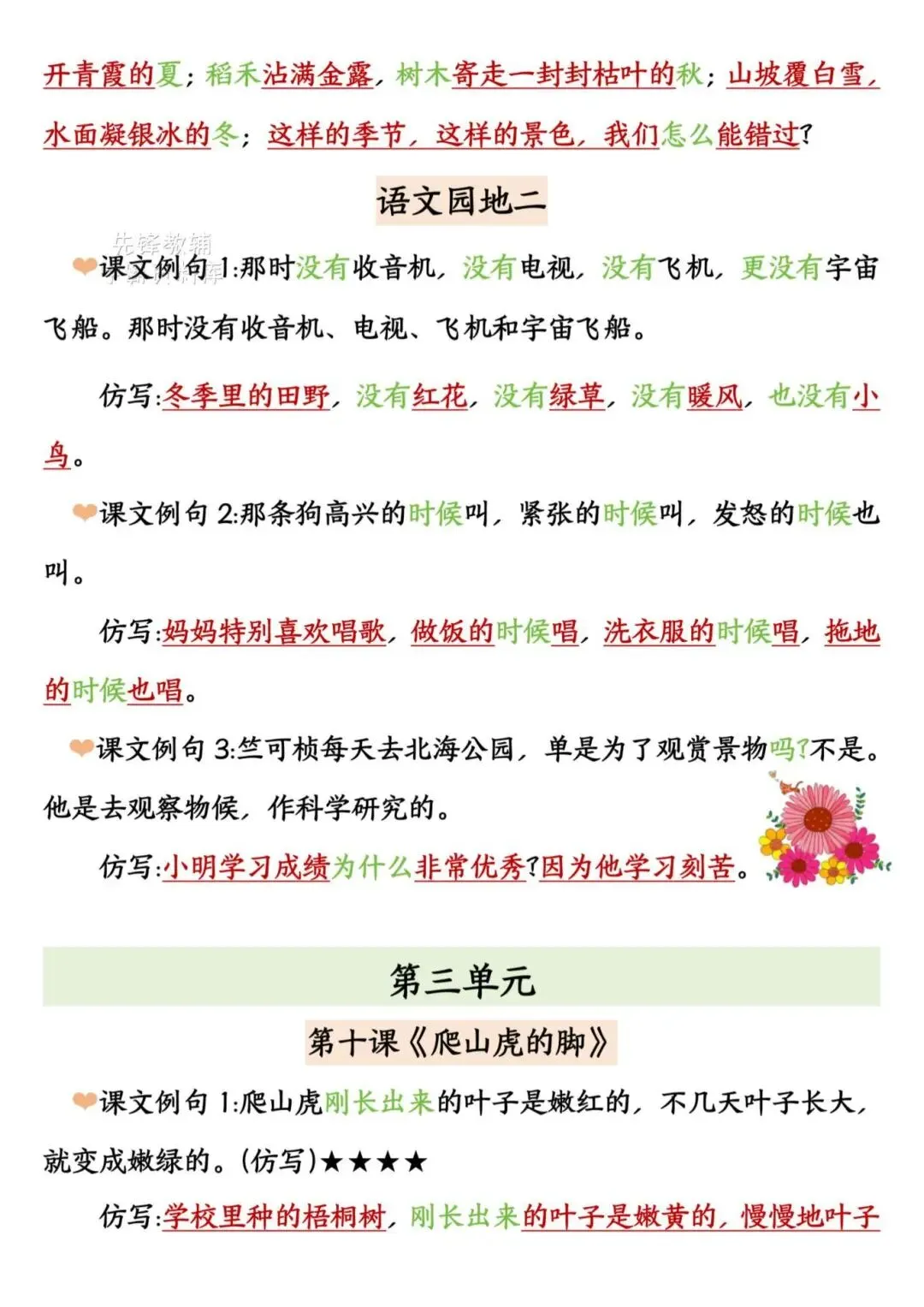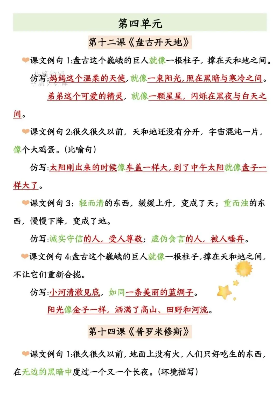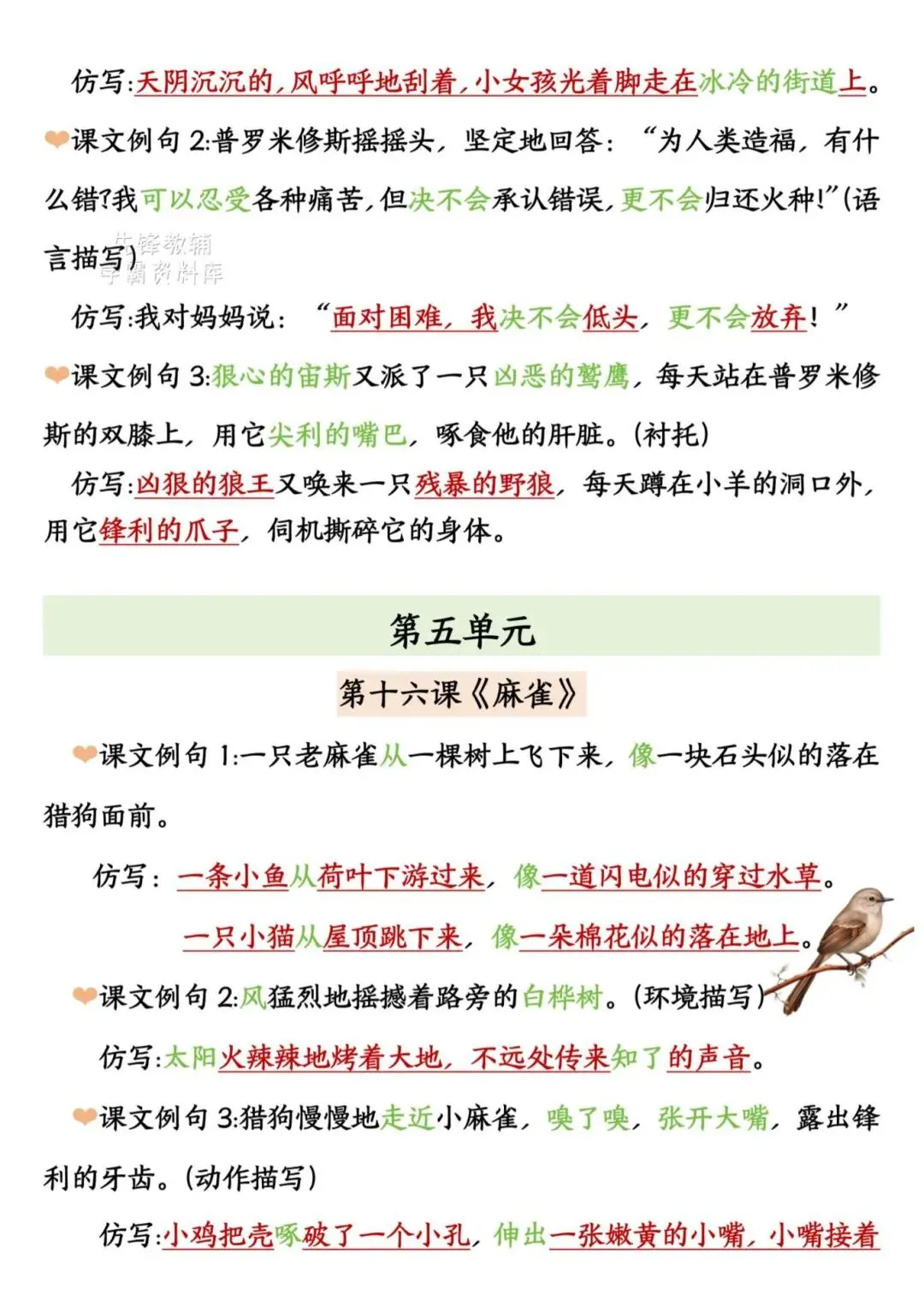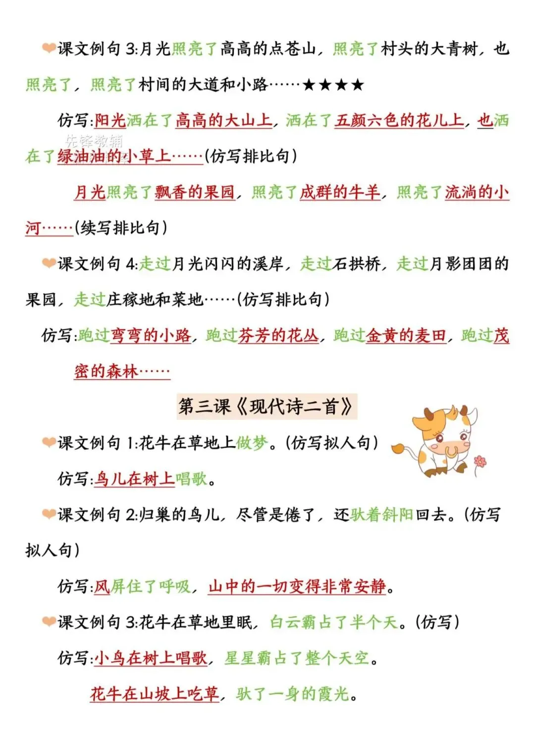2025年四年级上册语文《期末复习重点仿写句子汇总》,电子版可下载打印。这份资料聚焦仿写核心考点,按单元匹配课文经典例句,覆盖比喻、拟人、排比等多种句式及动作、神态等描写手法,仿写示例鲜活易懂,能帮助学生快速掌握仿写技巧、提升语言表达能力,针对性和实用性极强。家长赶紧给孩子打印出来吧!
