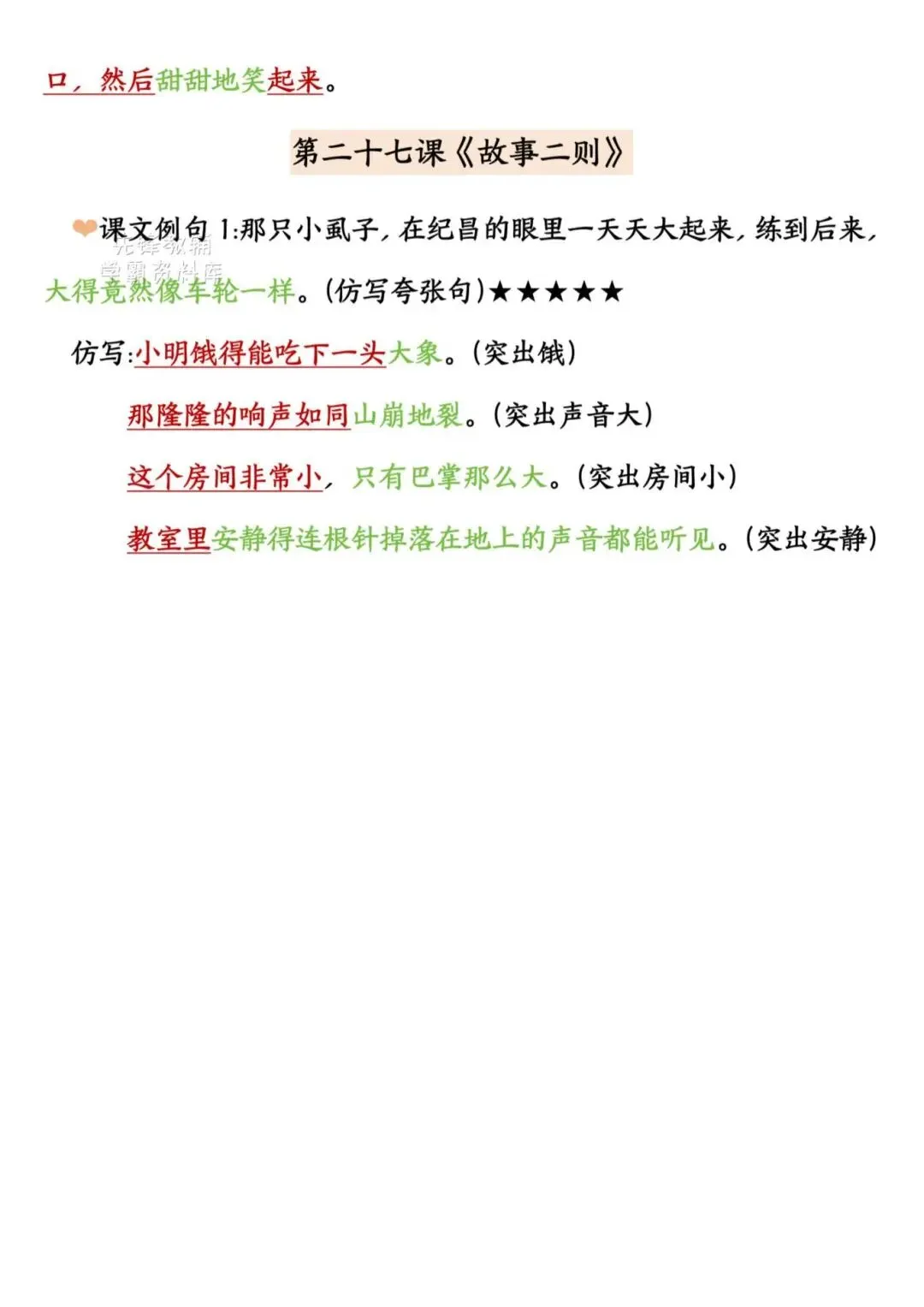2025年四年级上册语文《期末复习重点仿写句子汇总》,电子版可下载打印