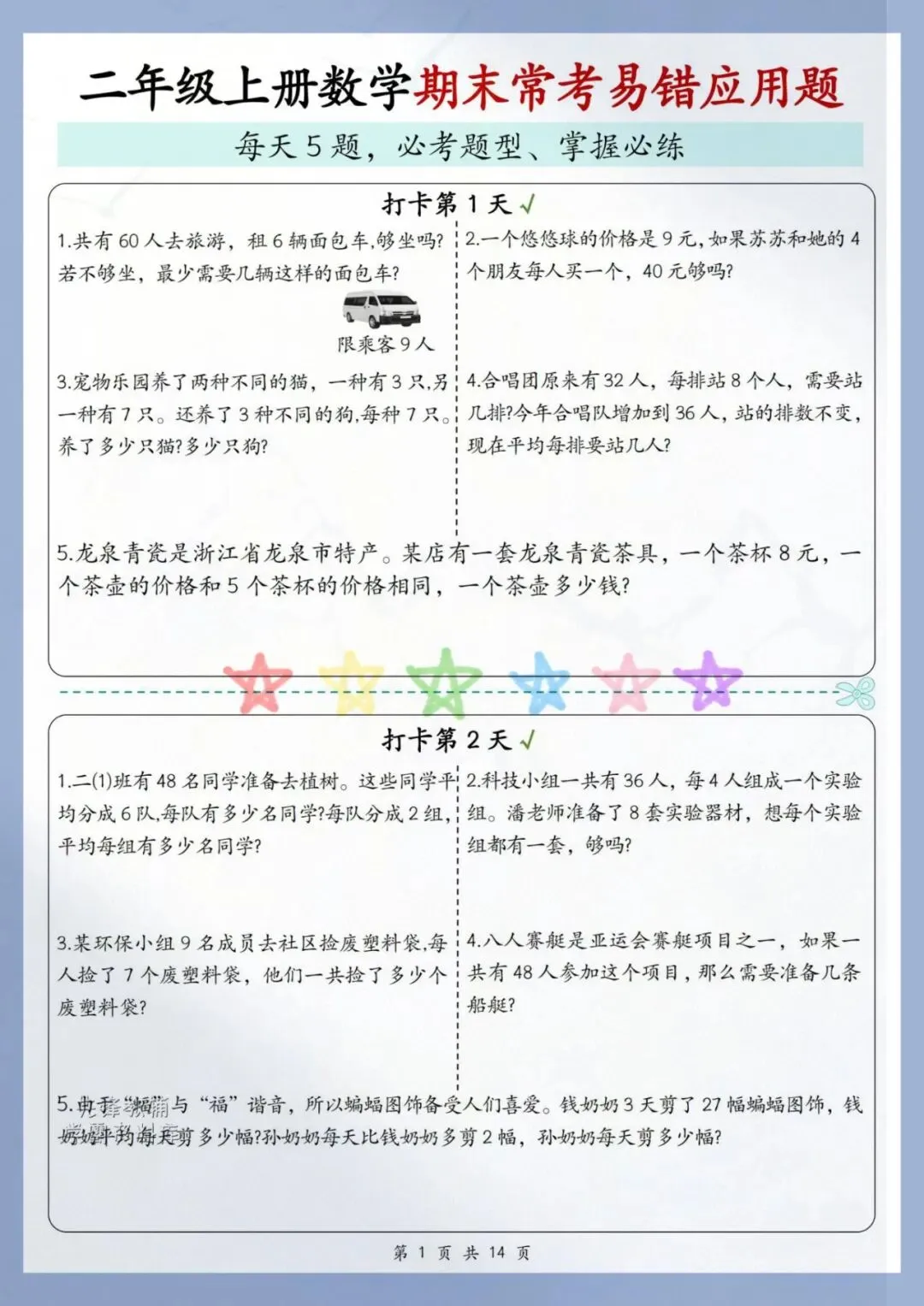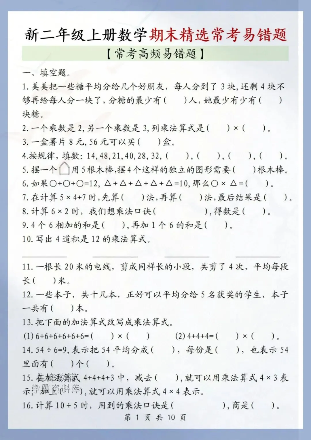 给大家分享:2025秋《二年级上册数学期末复习重点必练(历年常考易错题)》
