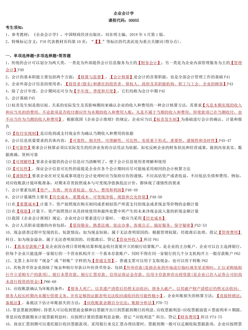 Hi,同学们好!本期给大家分享的复习资料:自考00055《企业会计学》复习资料+历年真题+重难点笔记+考前密训+串讲+押题答案。